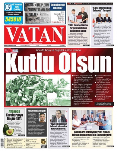 20 Temmuz 2019 Cumartesi Gazete Manşetleri