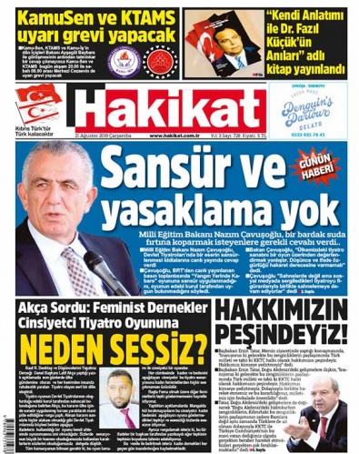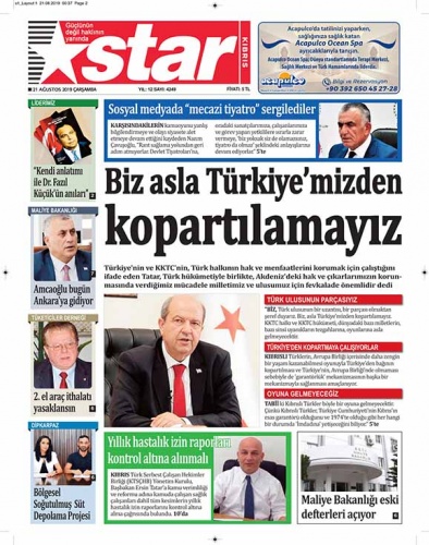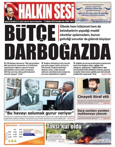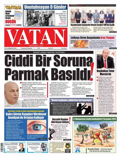21 Ağustos 2019 Çarşamba Gazete Manşetleri