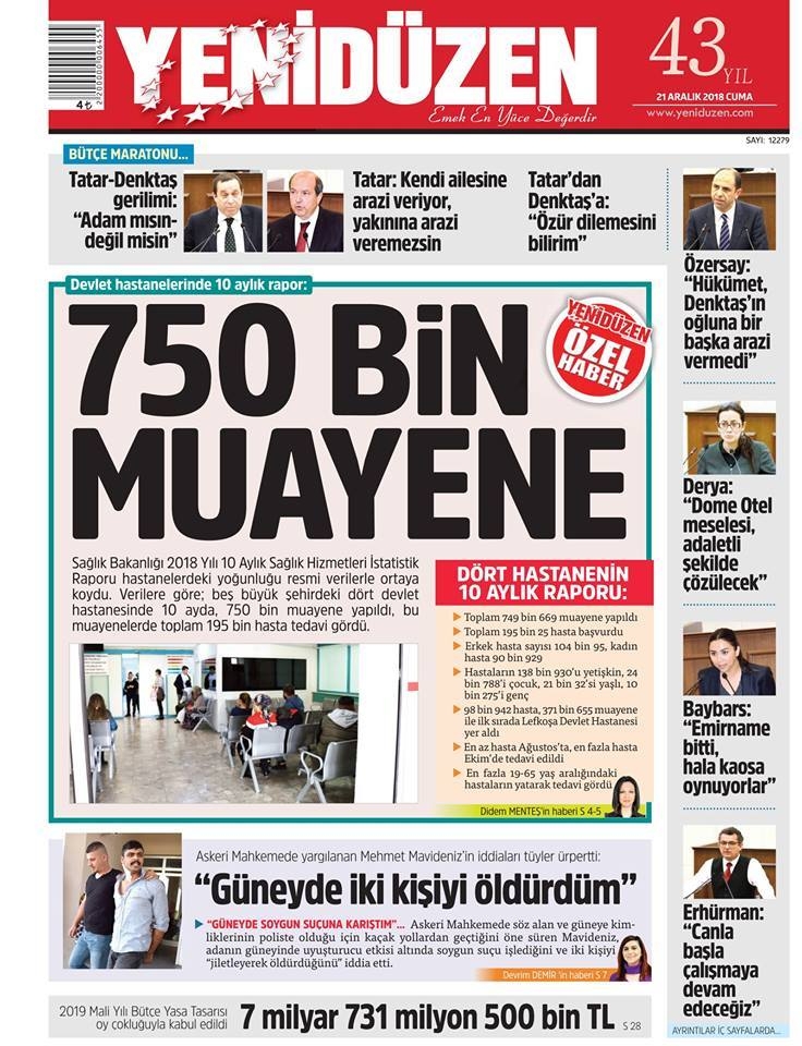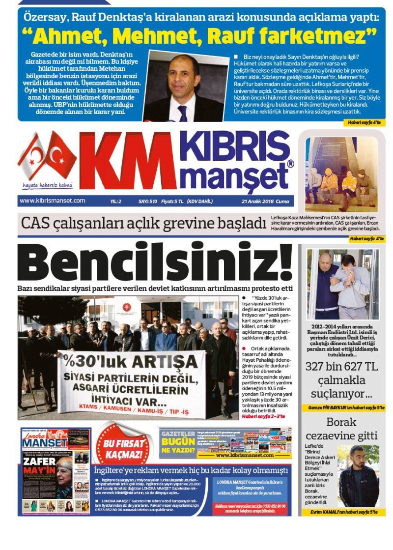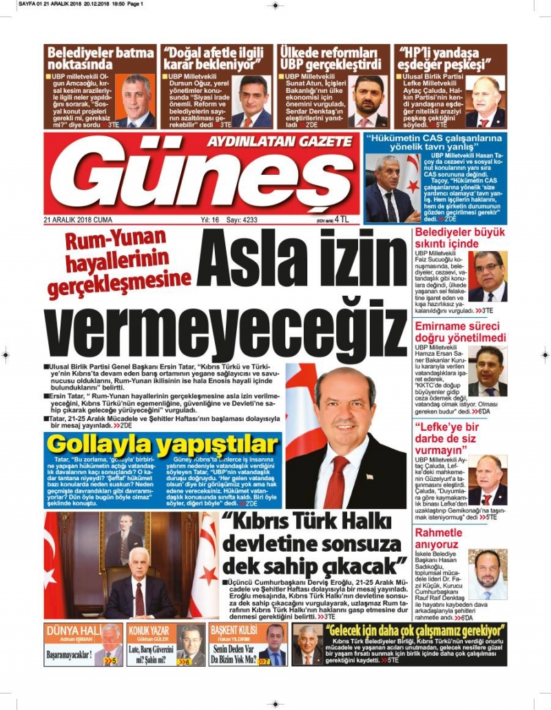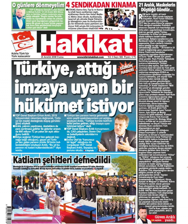 21 Aralık 2018 Cuma Gazete Manşetleri