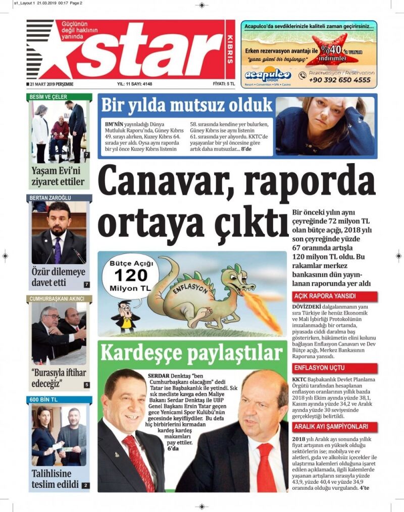 21 Mart 2019 Perşembe Gazete Manşetleri
