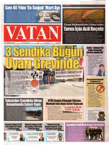 21 Mart 2022 Pazartesi Gazete Manşetleri