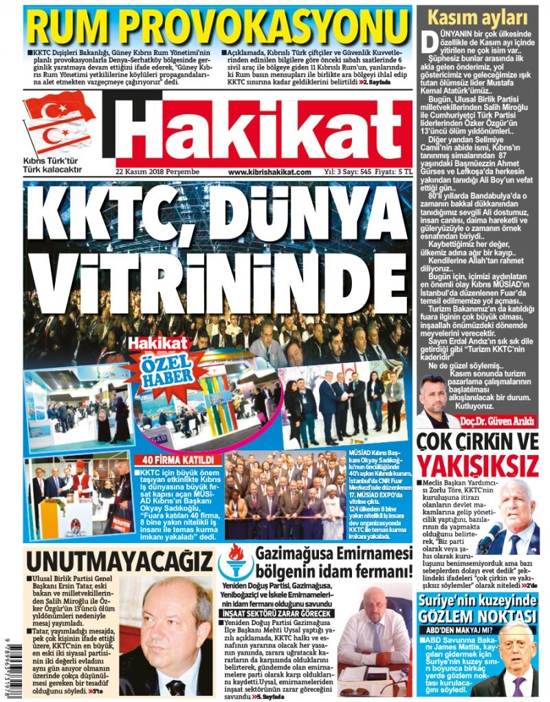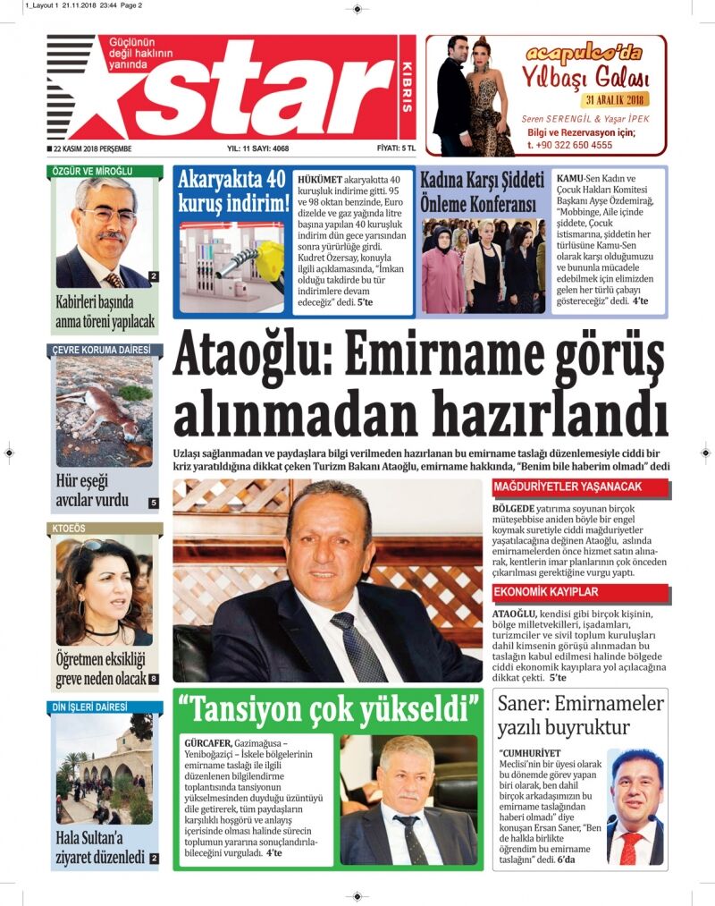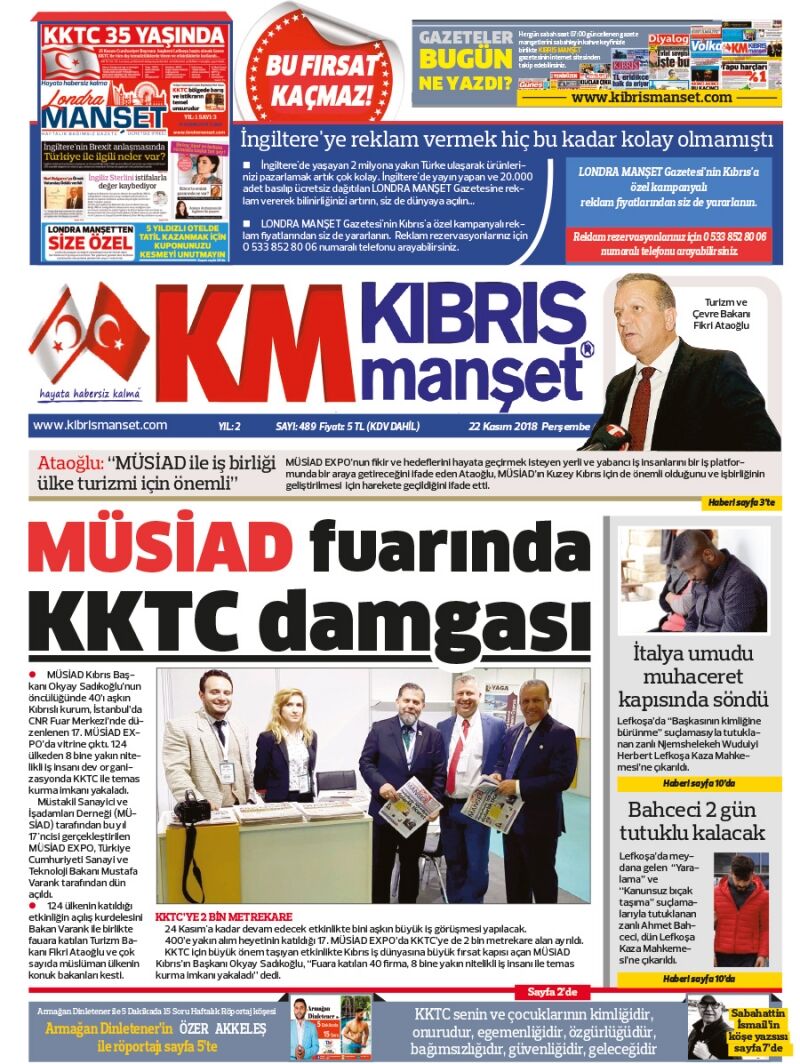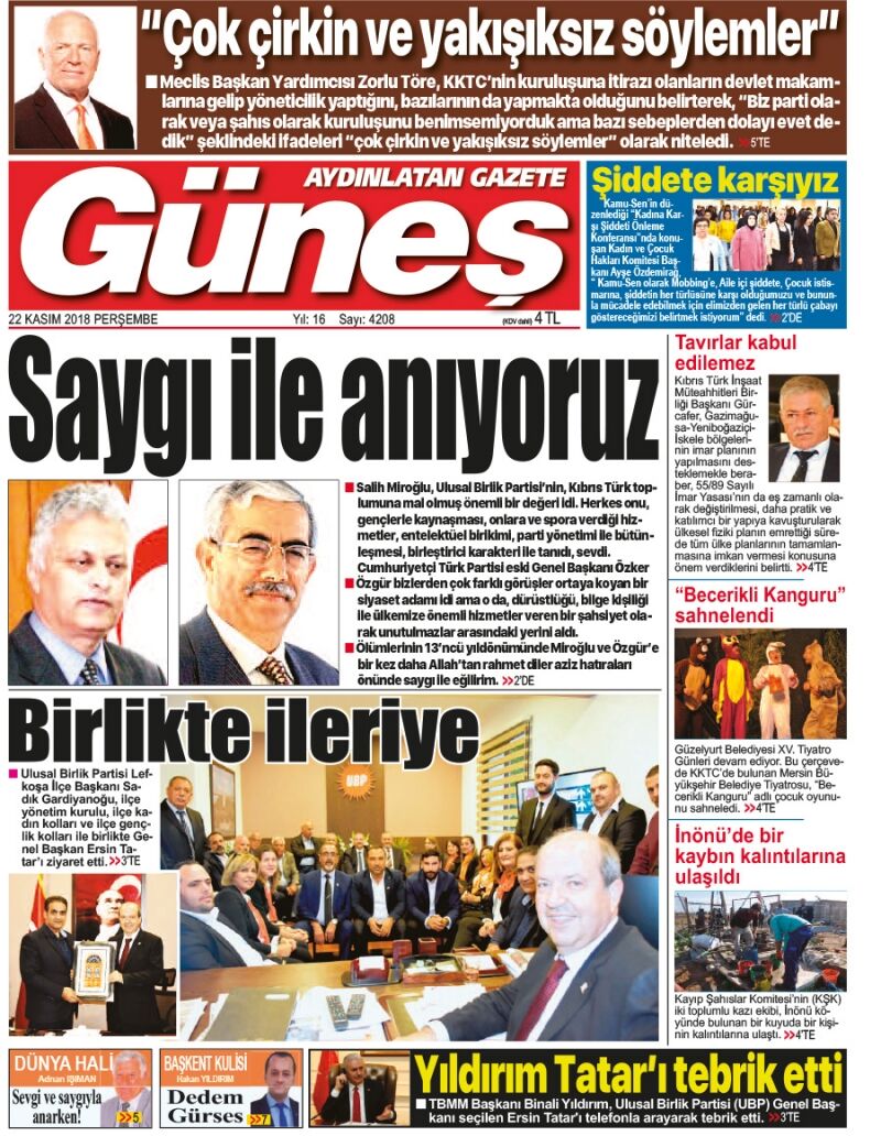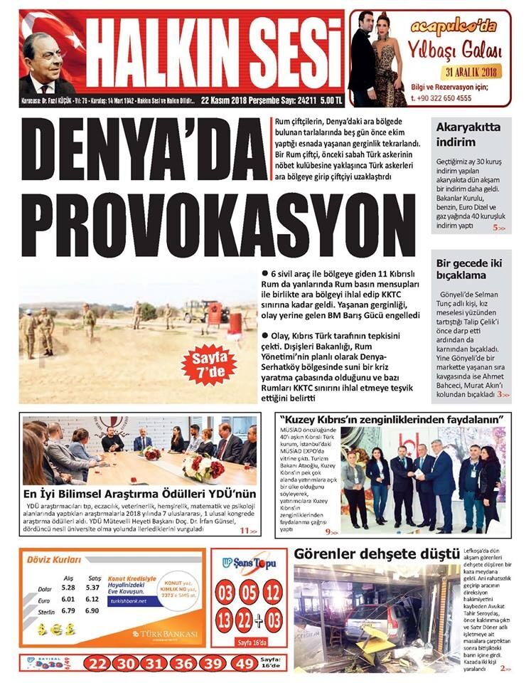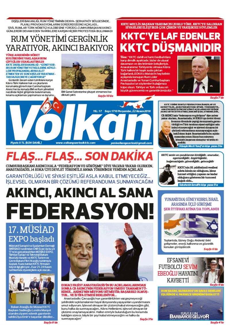 22 Kasım 2018 Perşembe Gazete Manşetleri