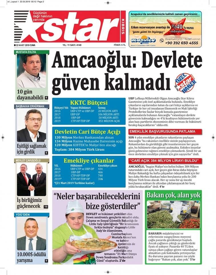 22 Mart 2019 Cuma Gazete Manşetleri