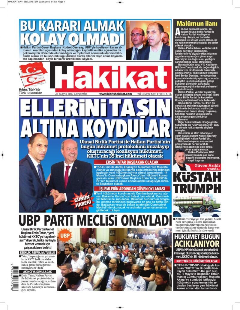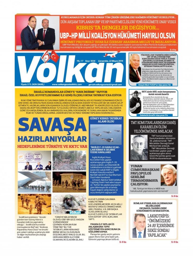 22 Mayıs 2019 Çarşamba Gazete Manşetleri