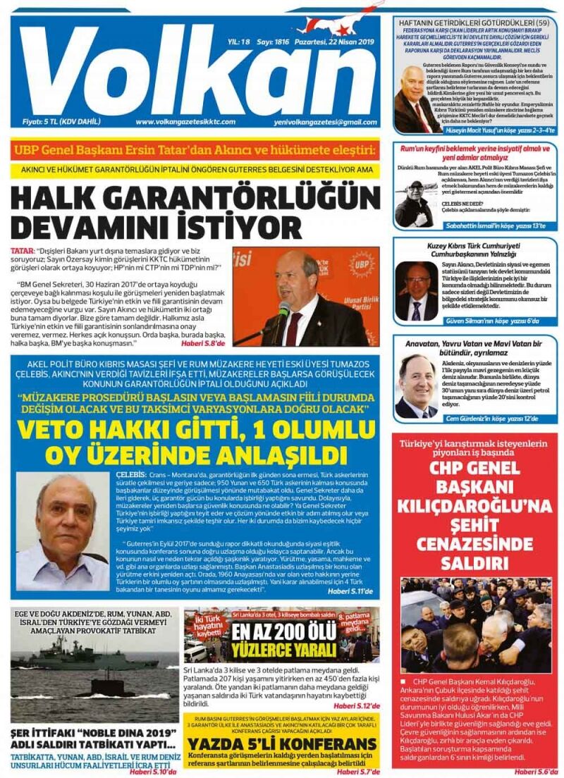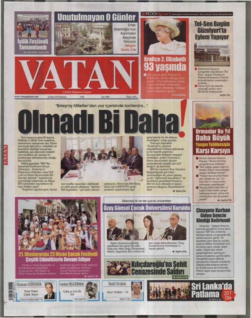 22 Nisan 2019 Pazartesi Gazete Manşetleri