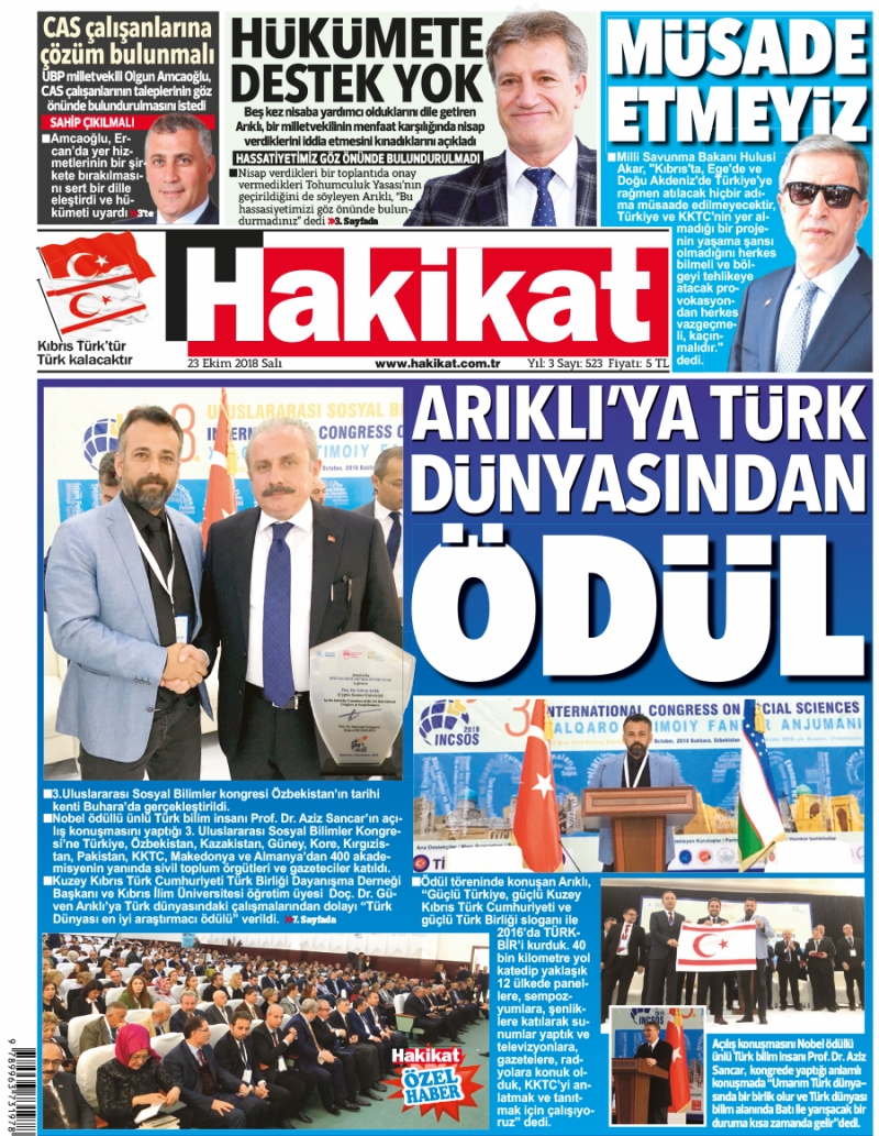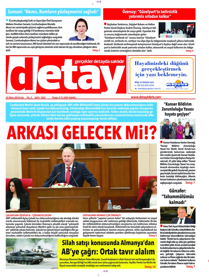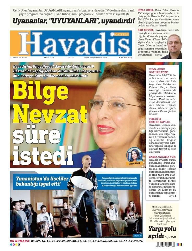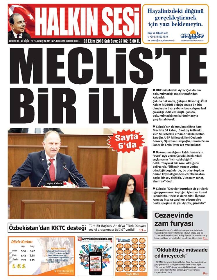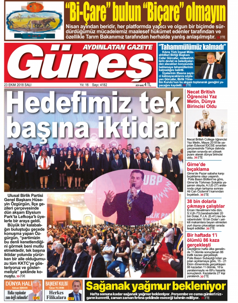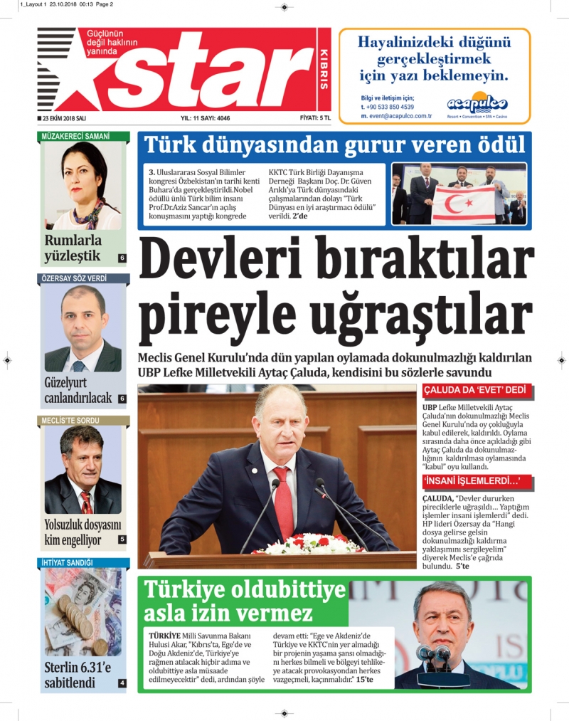 23 Ekim 2018 Salı Gazete Manşetleri