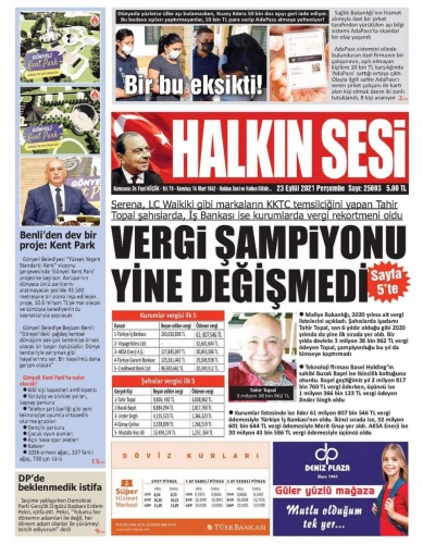 23 Eylül 2021 Perşembe Gazete Manşetleri