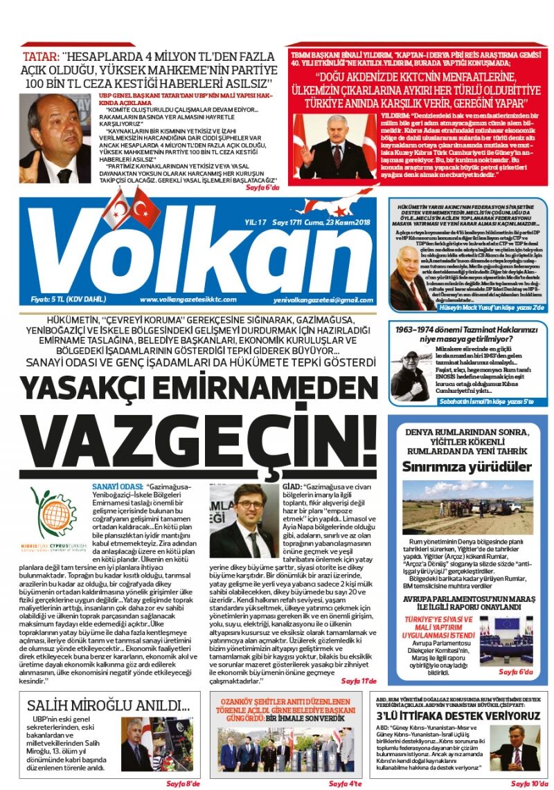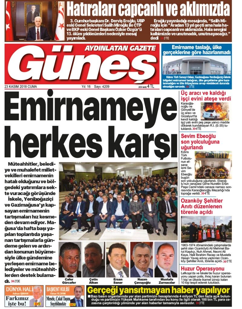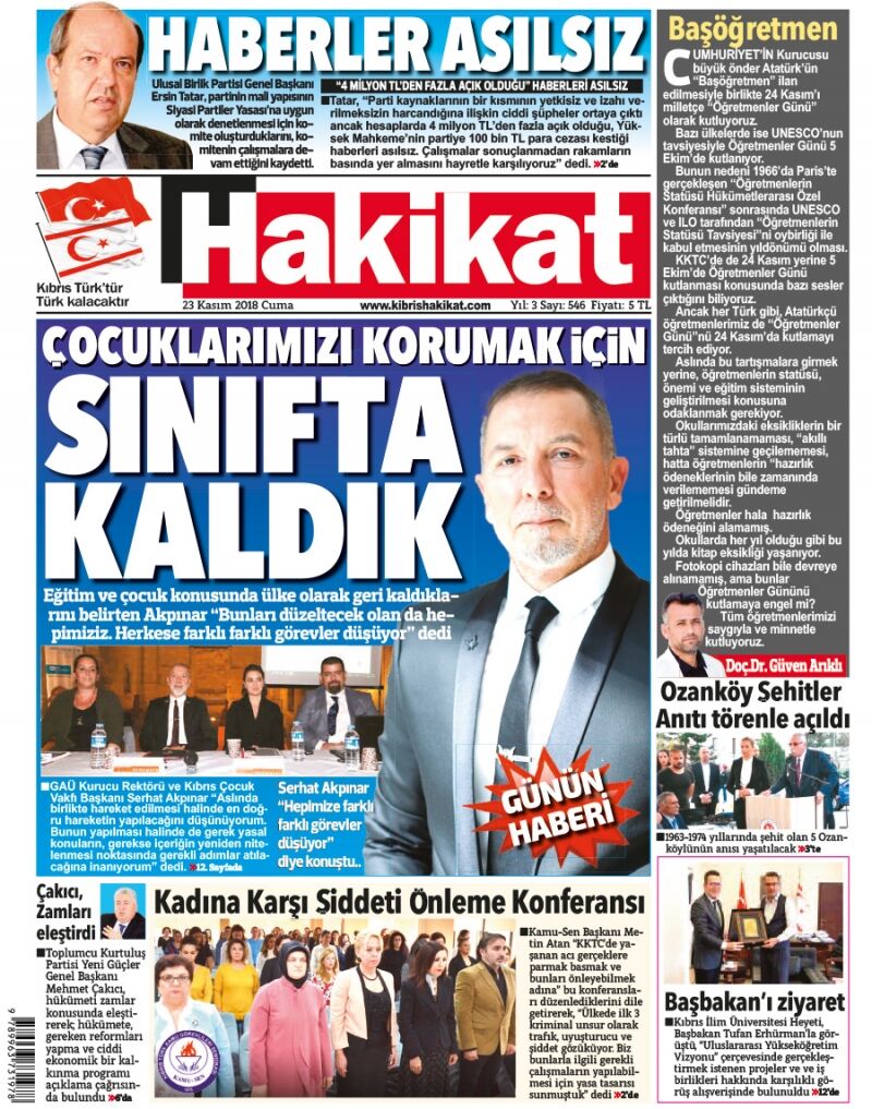 23 Kasım 2018 Cuma Gazete Manşetleri