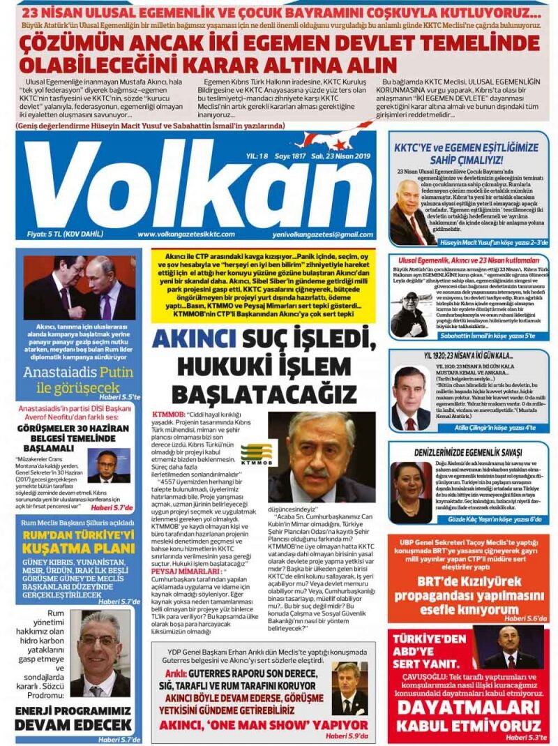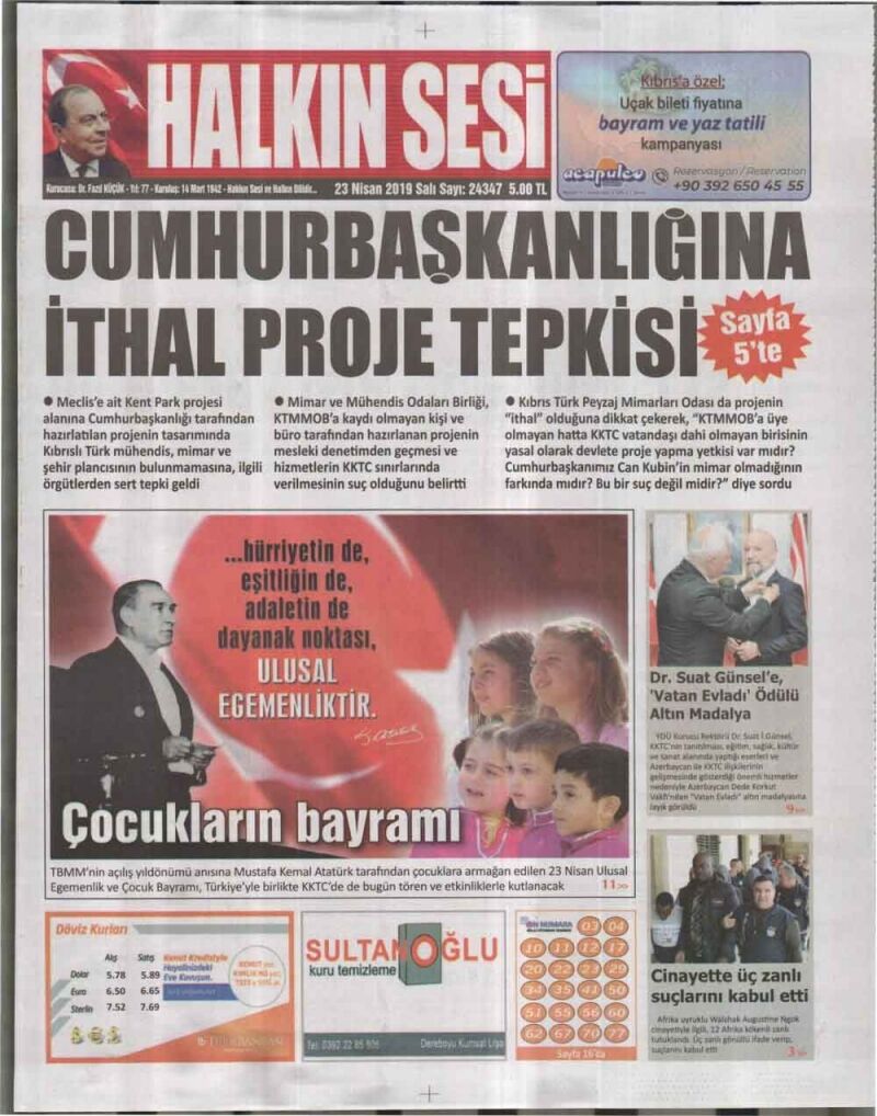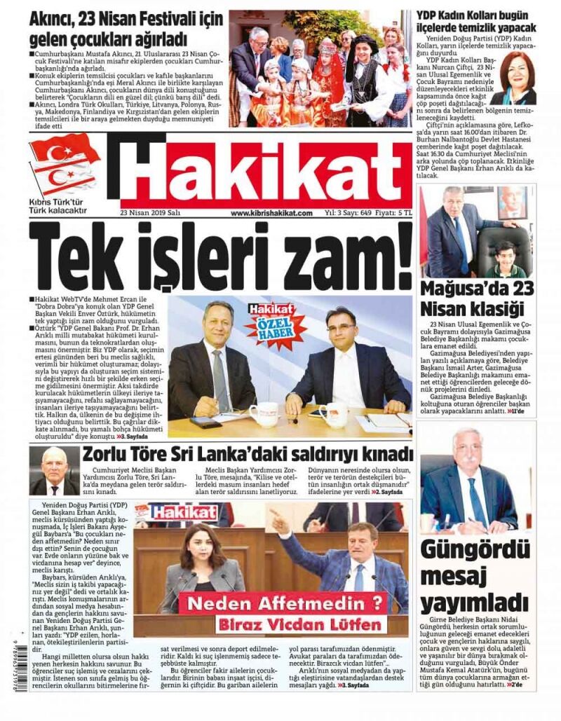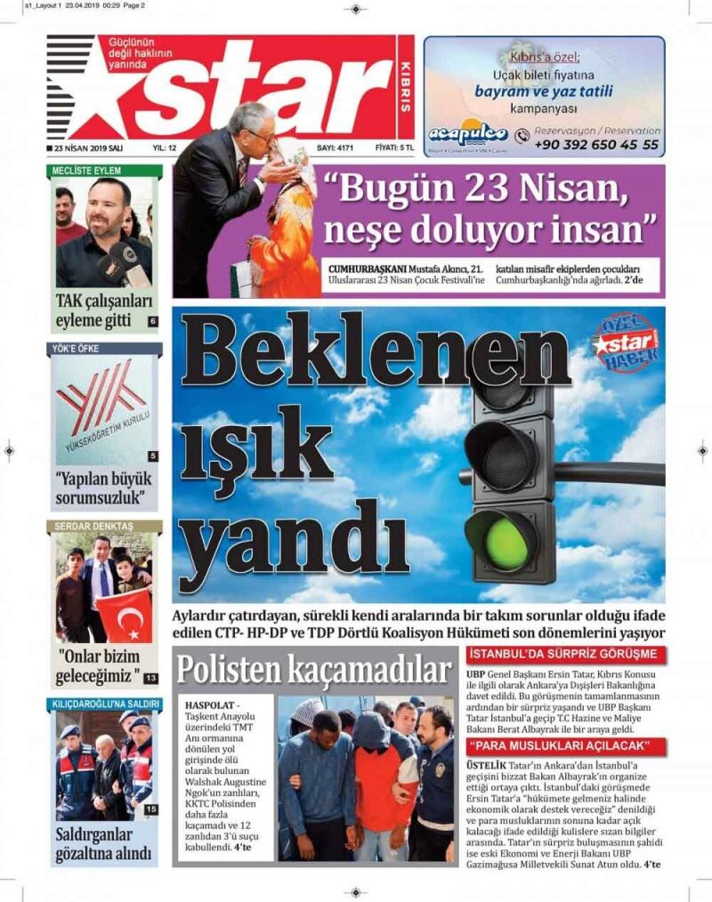 23 Nisan 2019 Salı Gazete Manşetleri