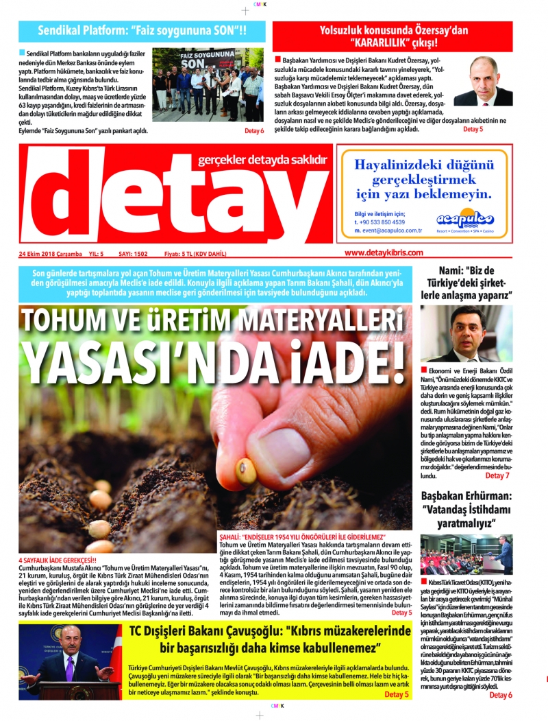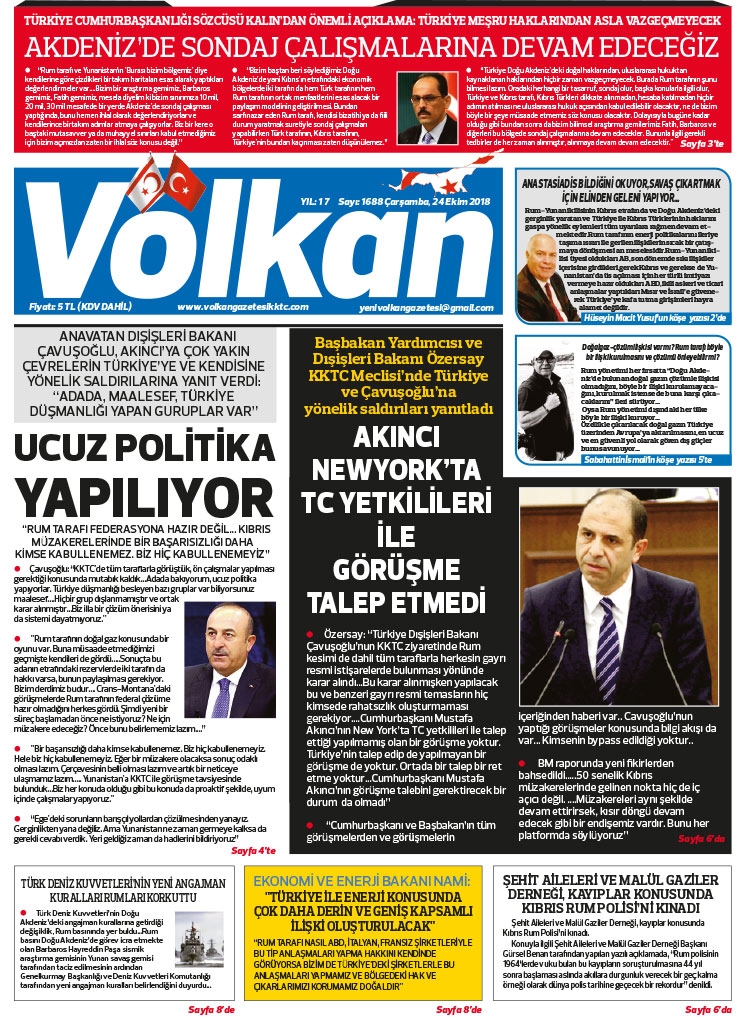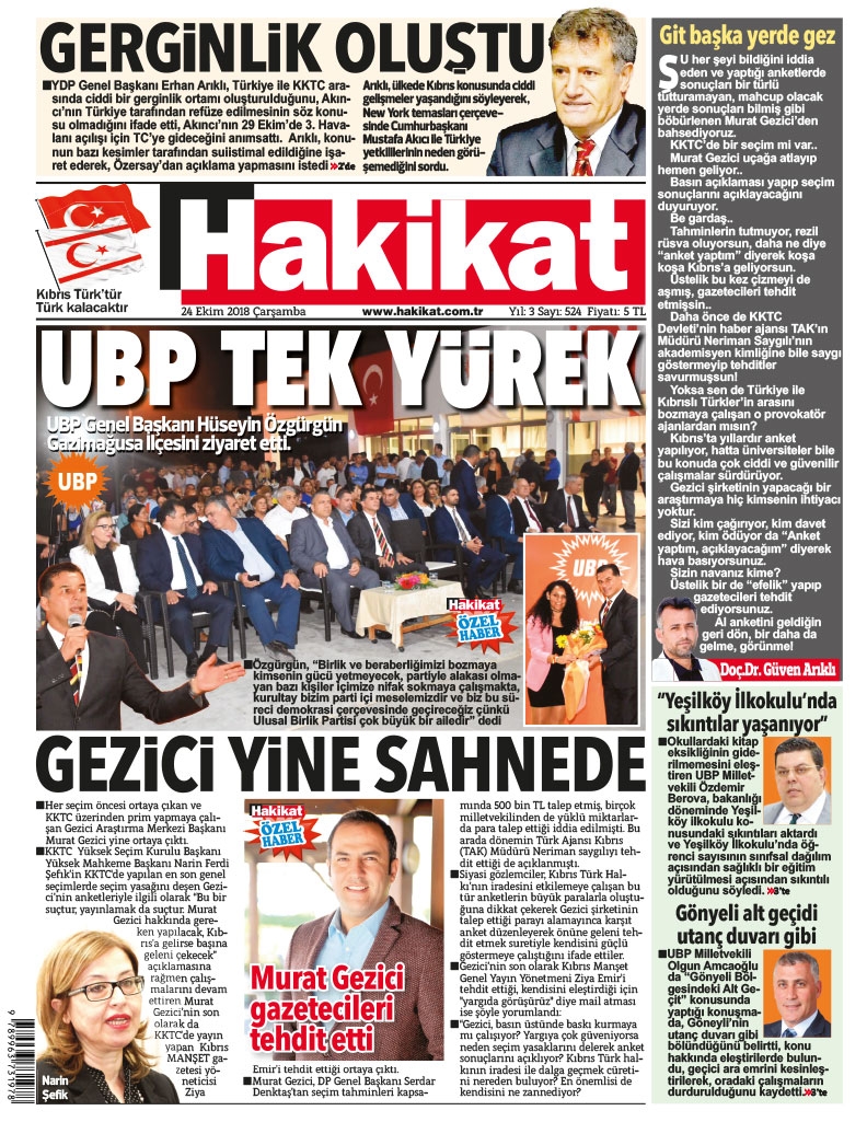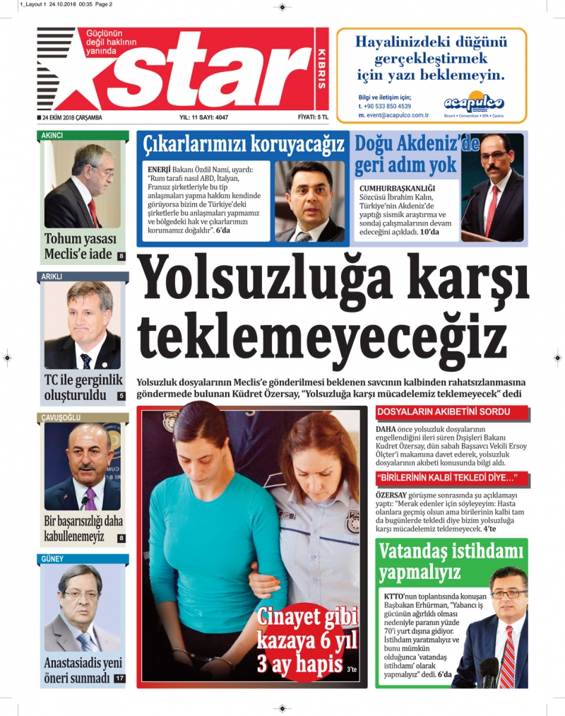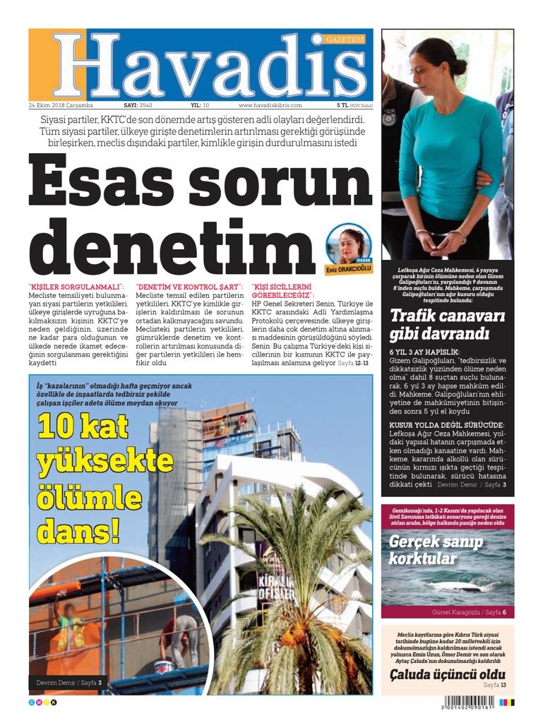 24 Ekim 2018 Çarşamba Gazete Manşetleri