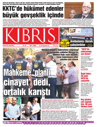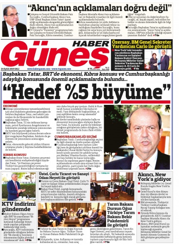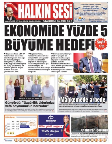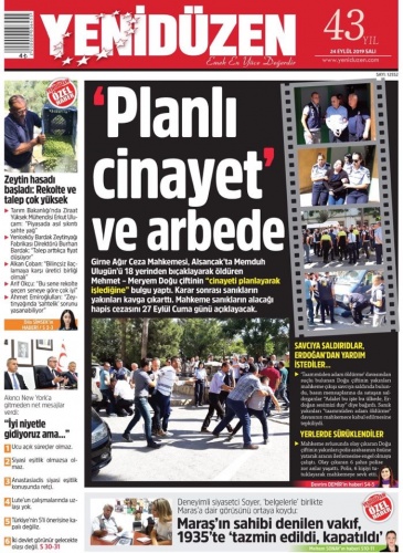 24 Eylül 2019 Salı Gazete Manşetleri