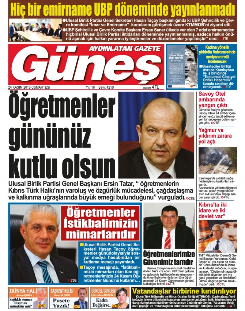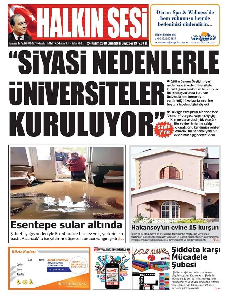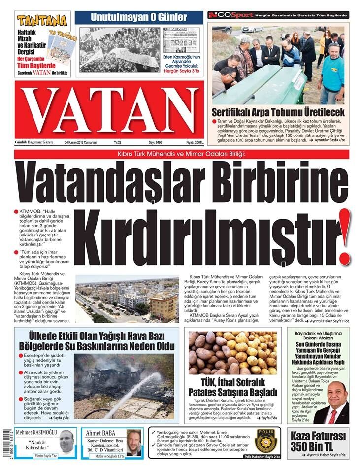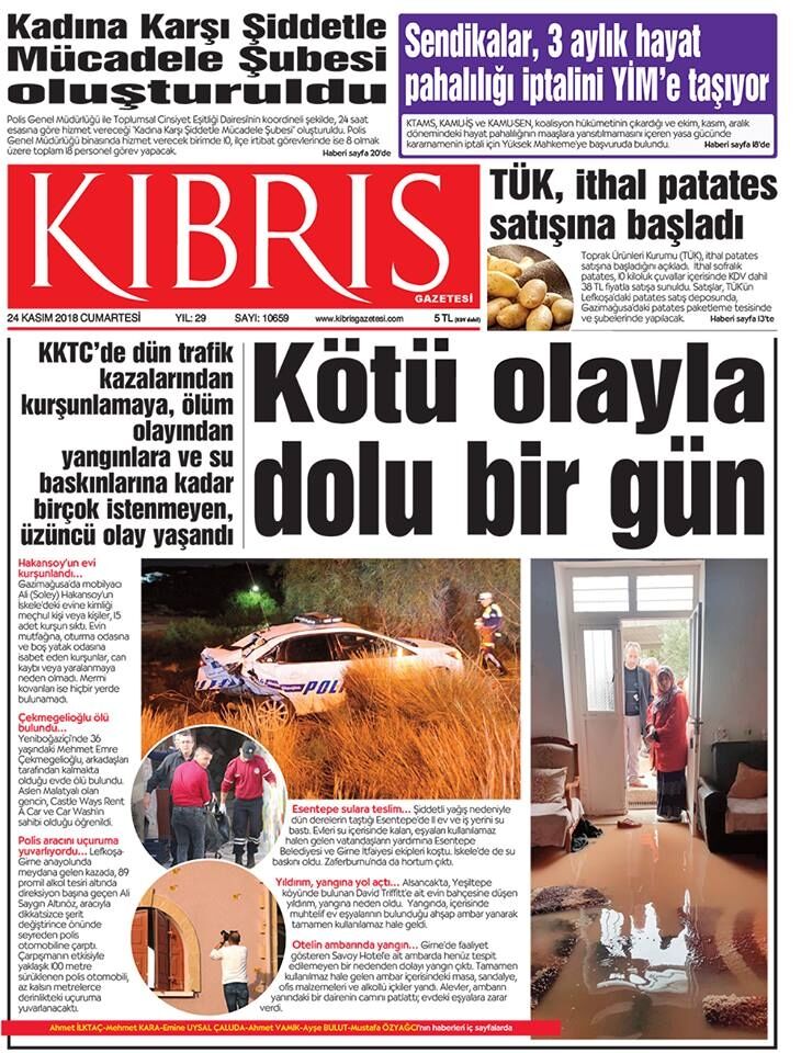 24 Kasım 2018 Cumartesi Gazete Manşetleri