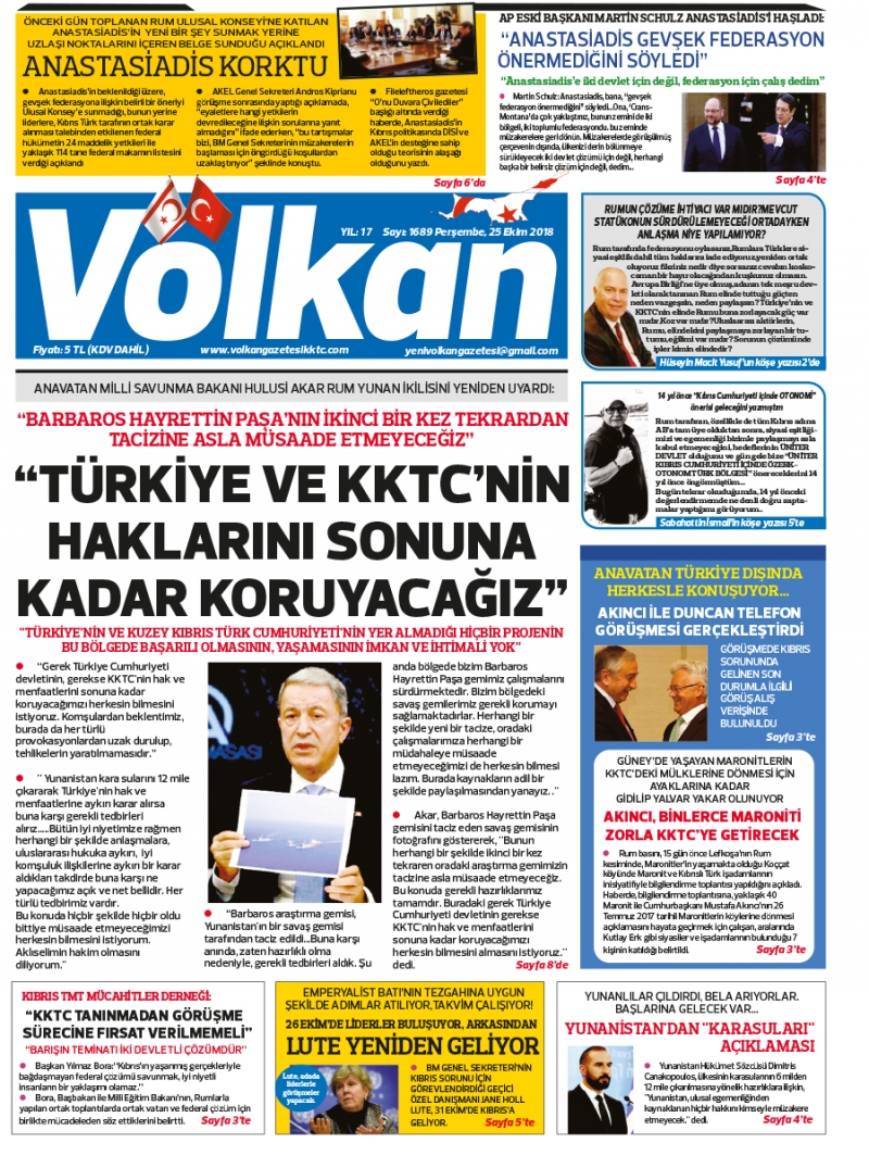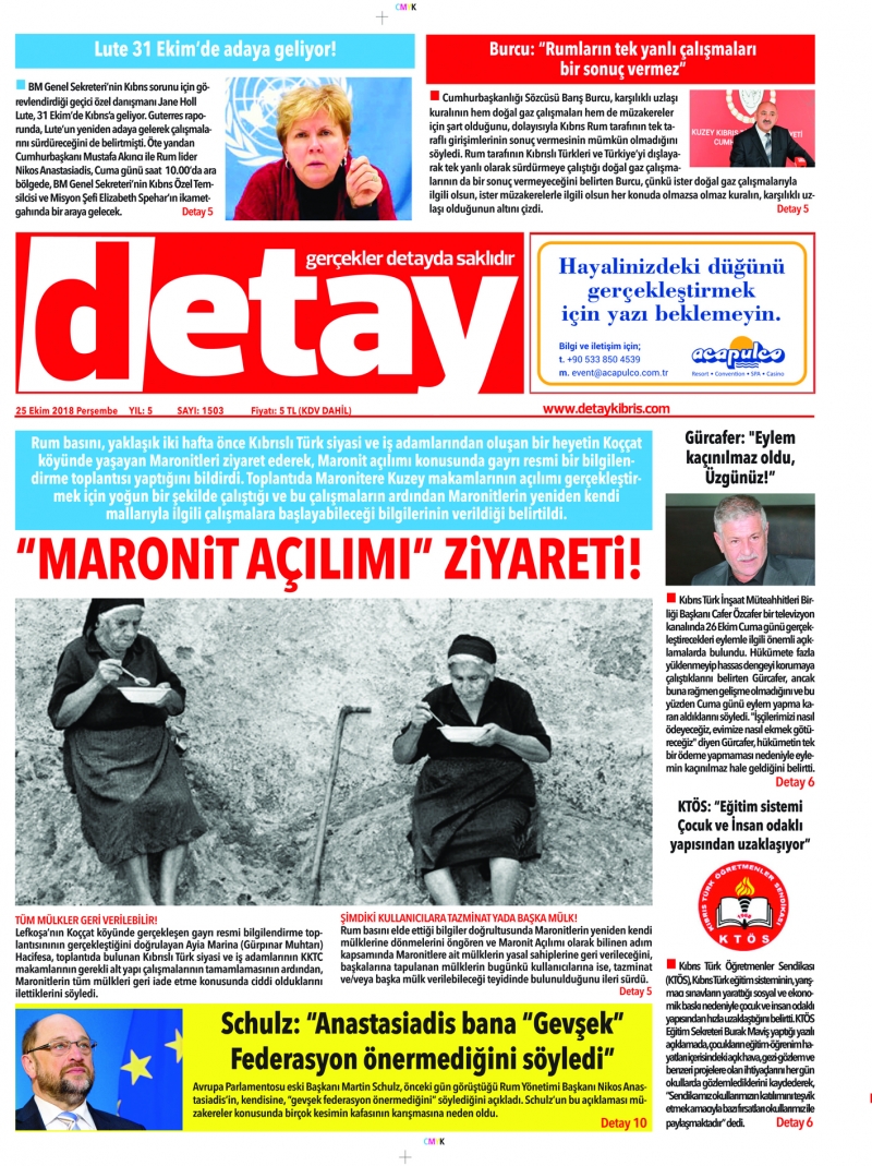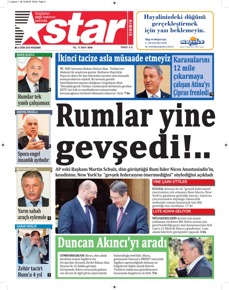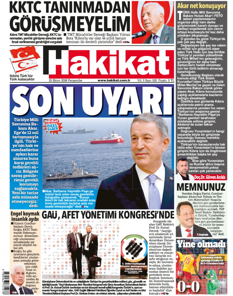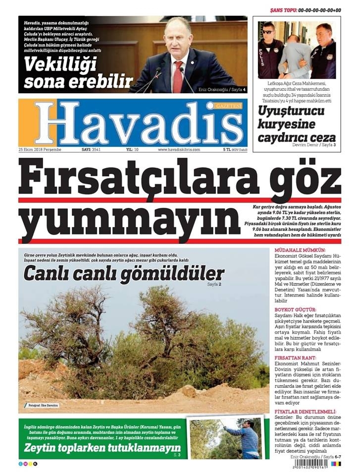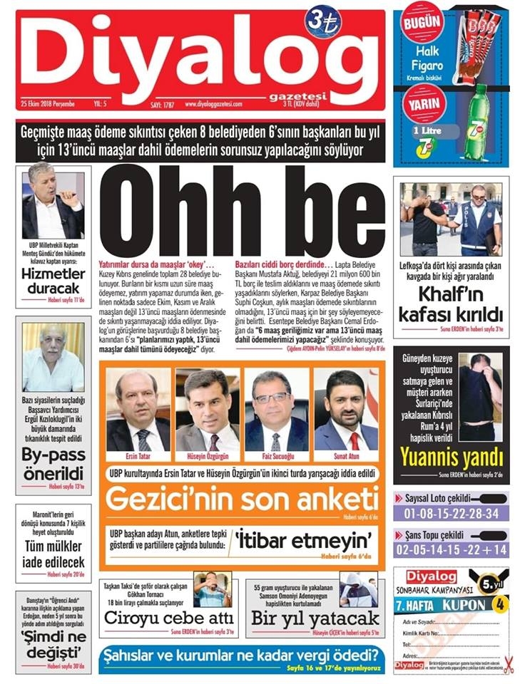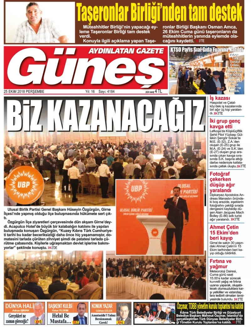 25 Ekim 2018 Perşembe Gazete Manşetleri