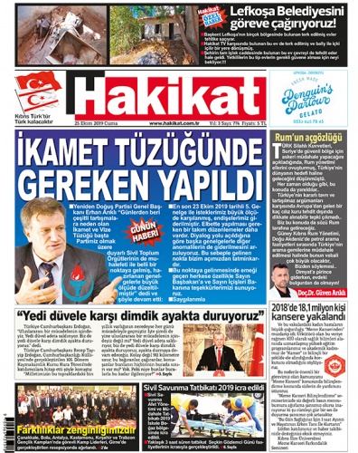 25 Ekim 2019 Cuma Gazete Manşetleri