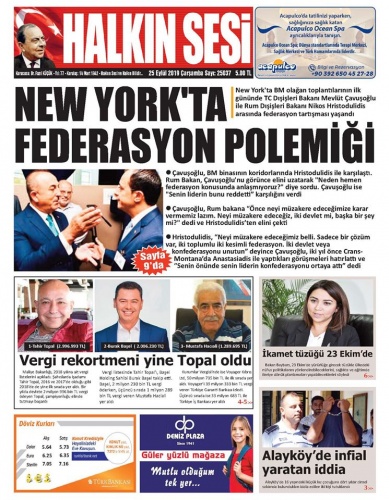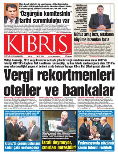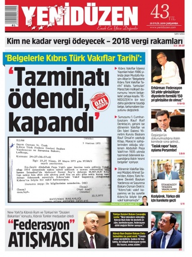 25 Eylül 2019 Çarşamba Gazete Manşetleri