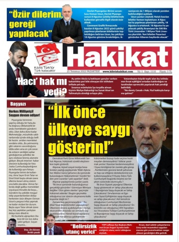 25 Temmuz 2022 Pazartesi Gazete Manşetleri