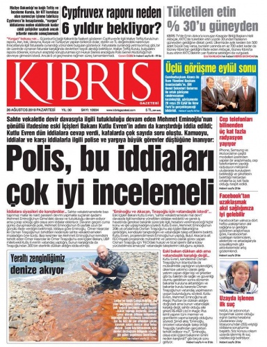 26 Ağustos 2019 Pazartesi Gazete Manşetleri