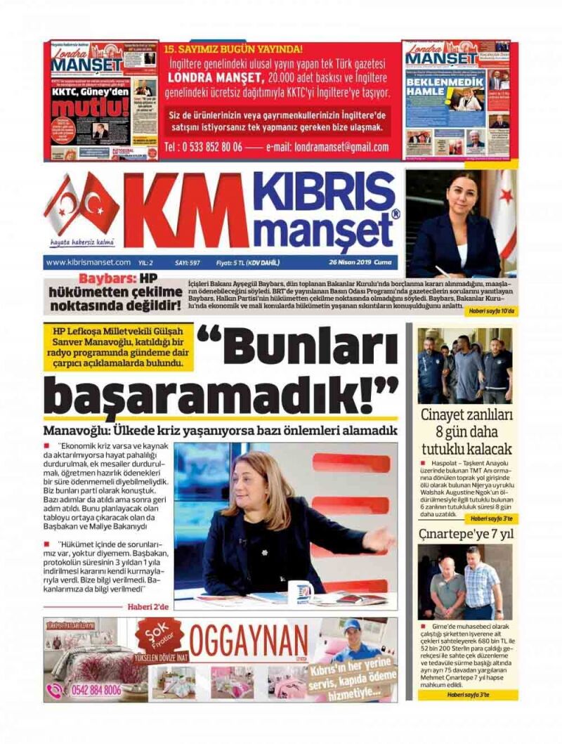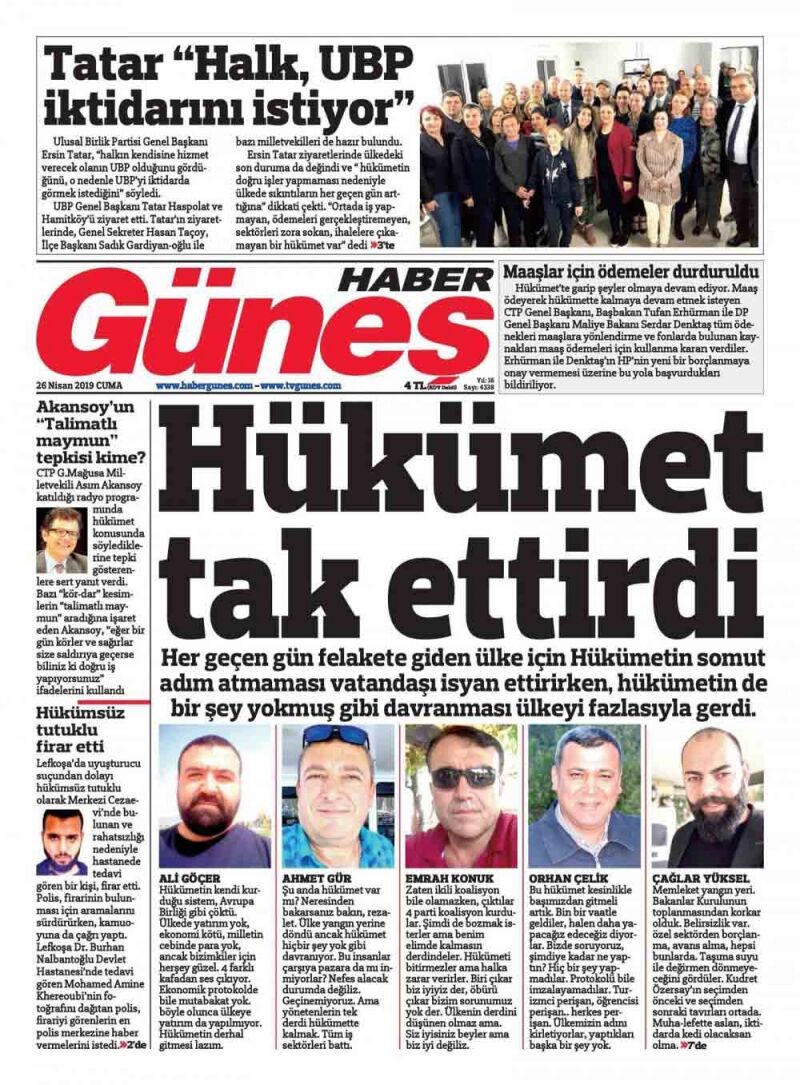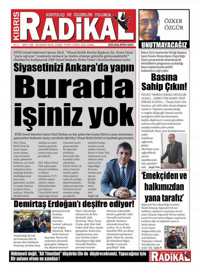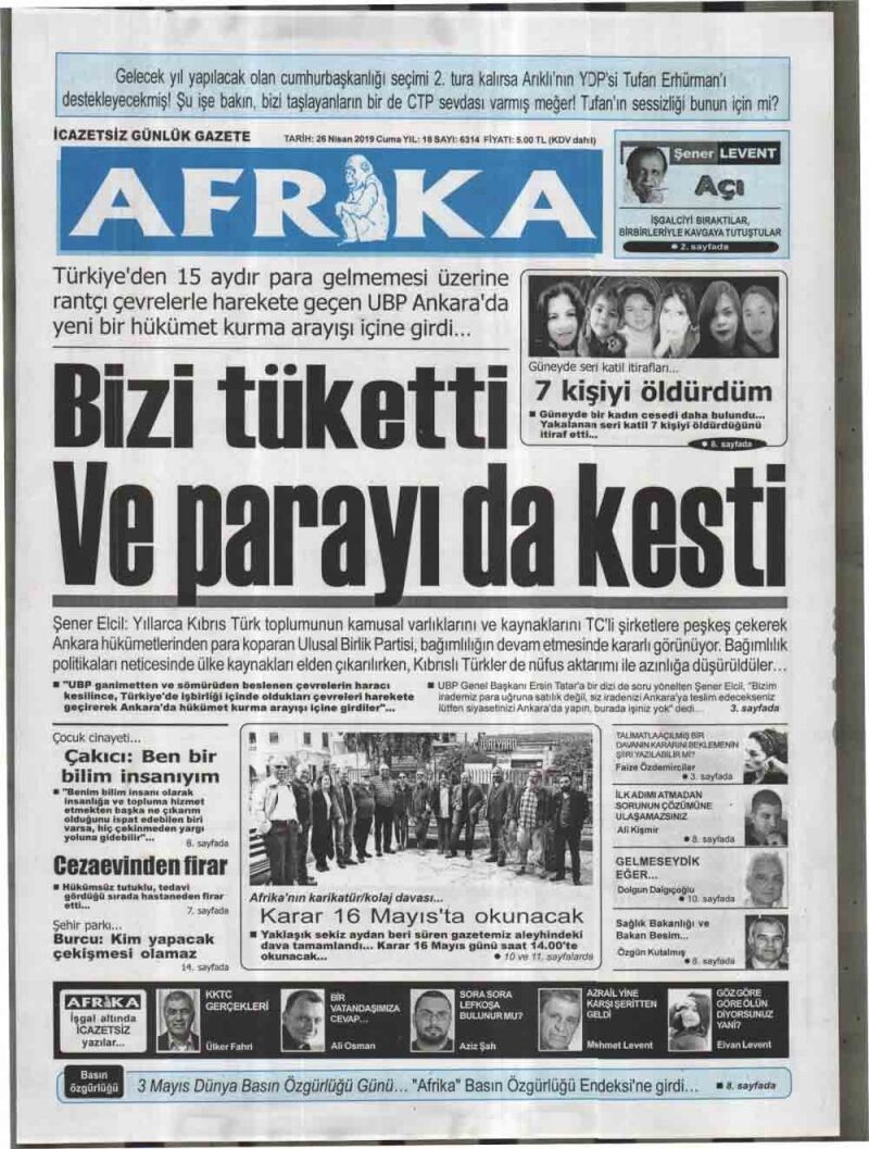 26 Nisan 2019 Cuma Gazete Manşetleri
