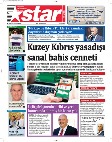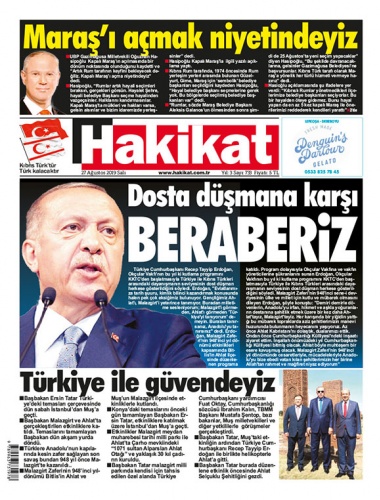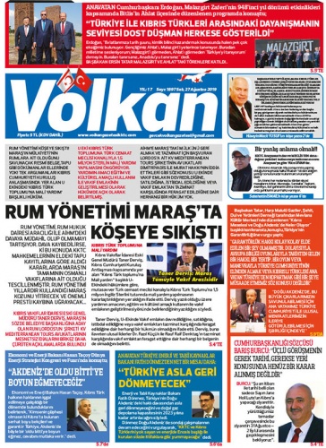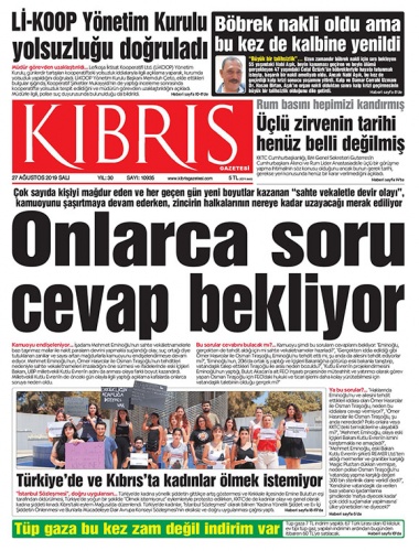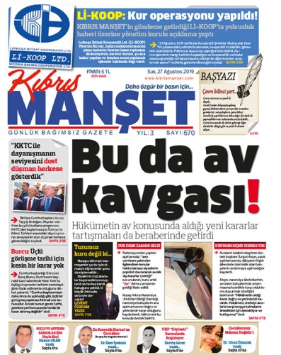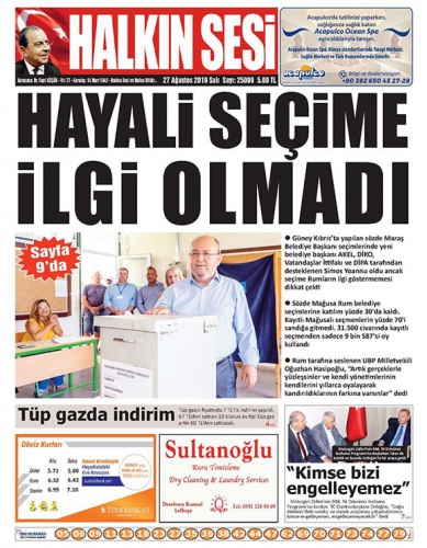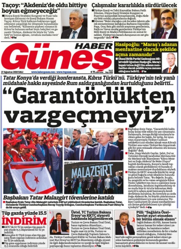 27 Ağustos 2019 Salı Gazete Manşetleri