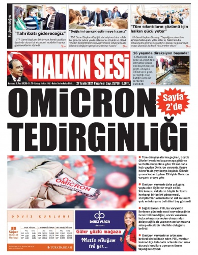 27 Aralık 2021 Pazartesi Gazete Manşetleri