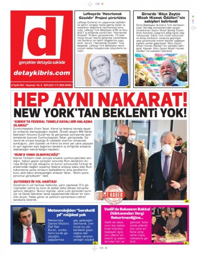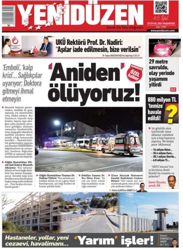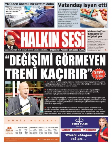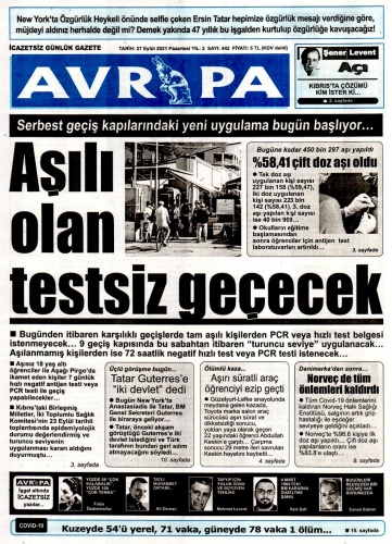 27 Eylül 2021 Pazartesi Gazete Manşetleri
