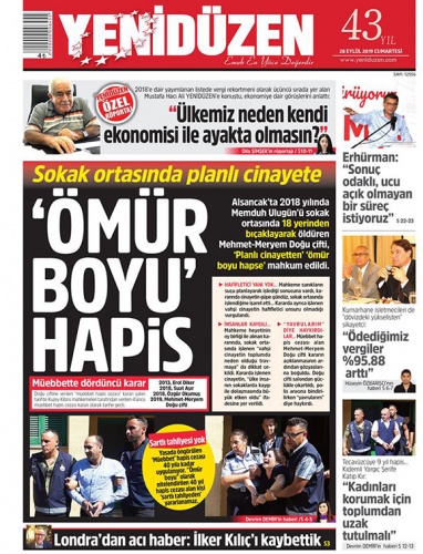 28 Eylül 2019 Cumartesi Gazete Manşetleri