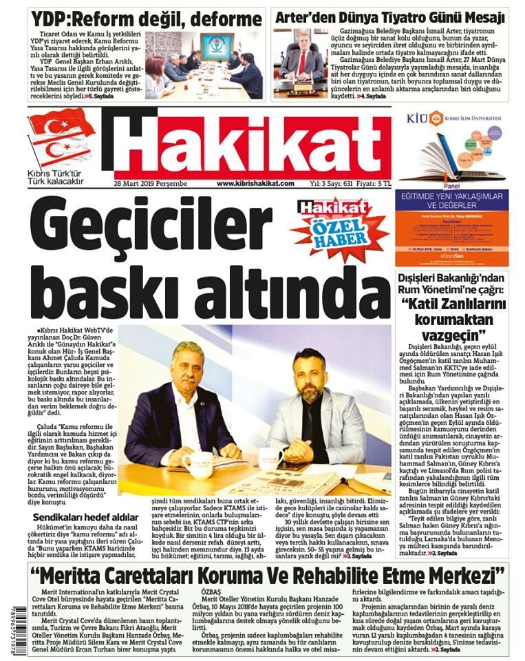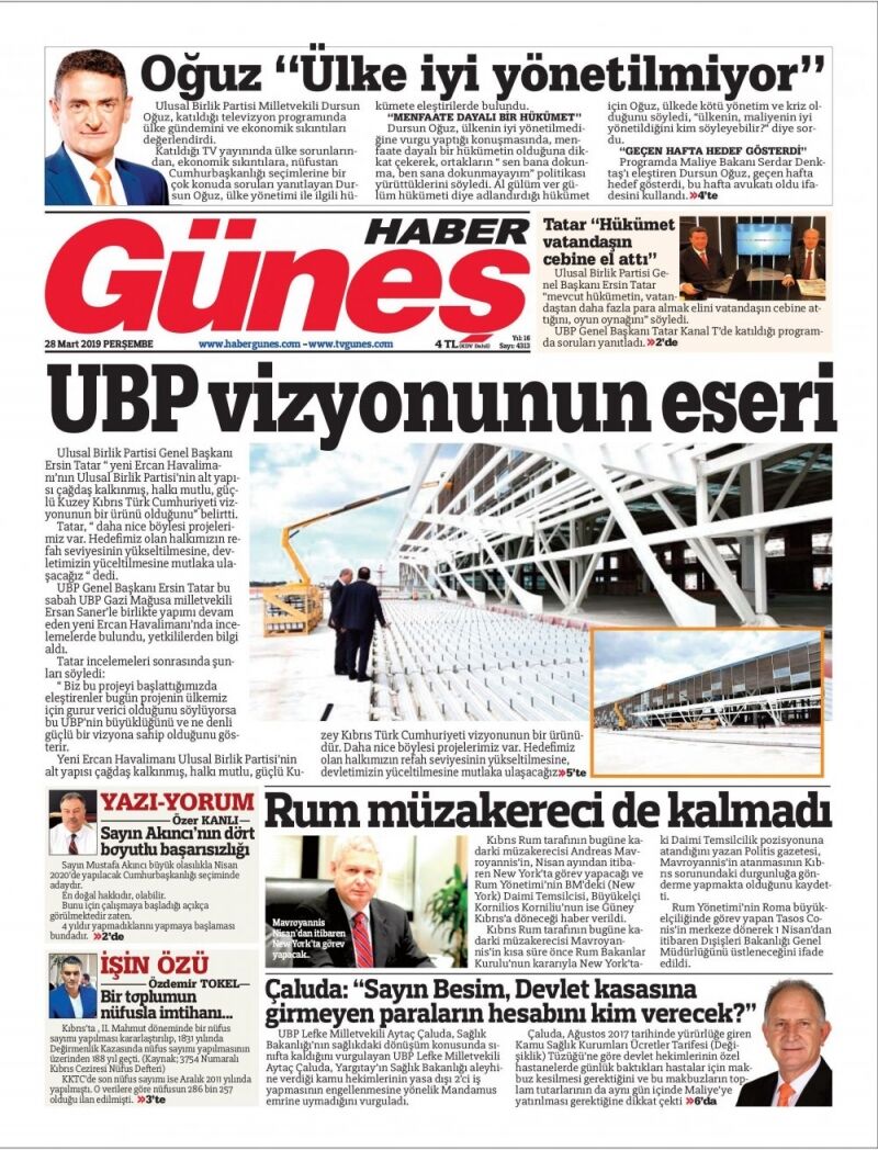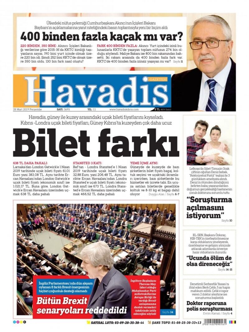 28 Mart 2019 Perşembe Gazete Manşetleri