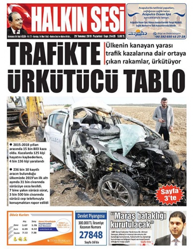 29 Temmuz 2019 Pazartesi Gazete Manşetleri