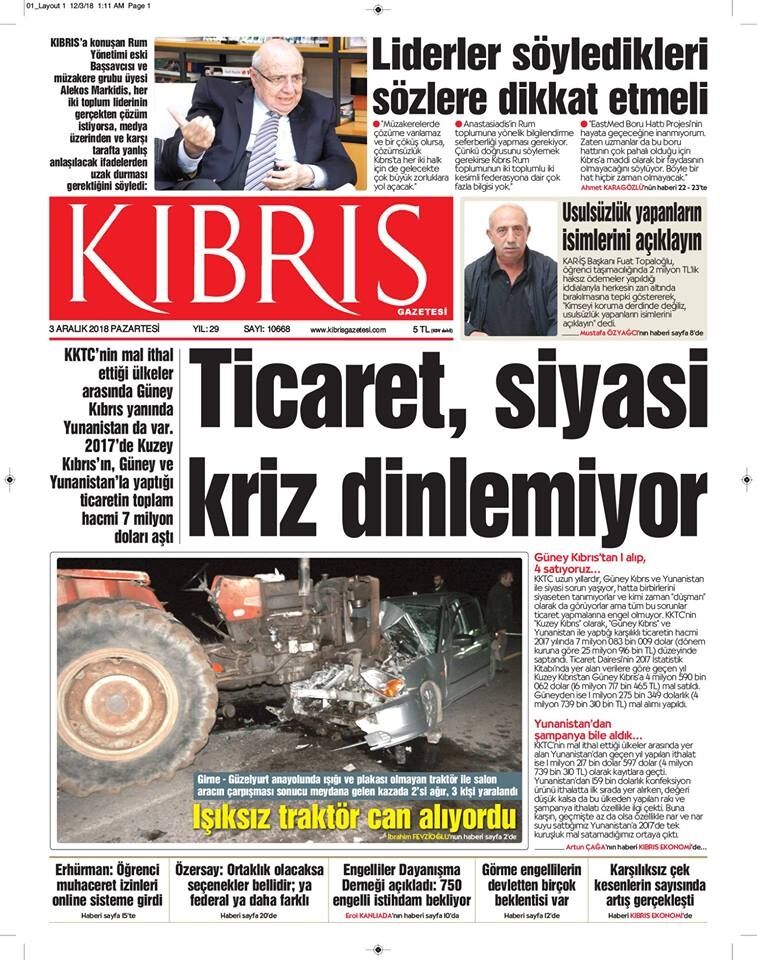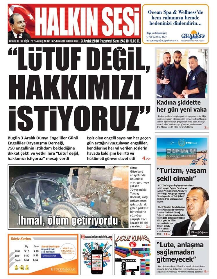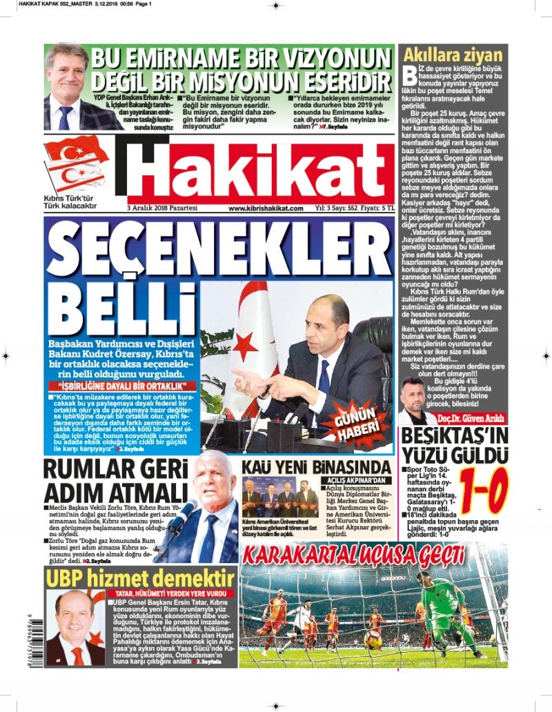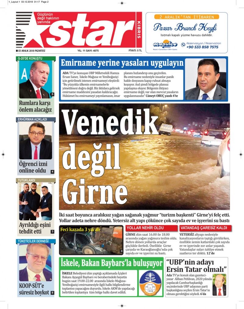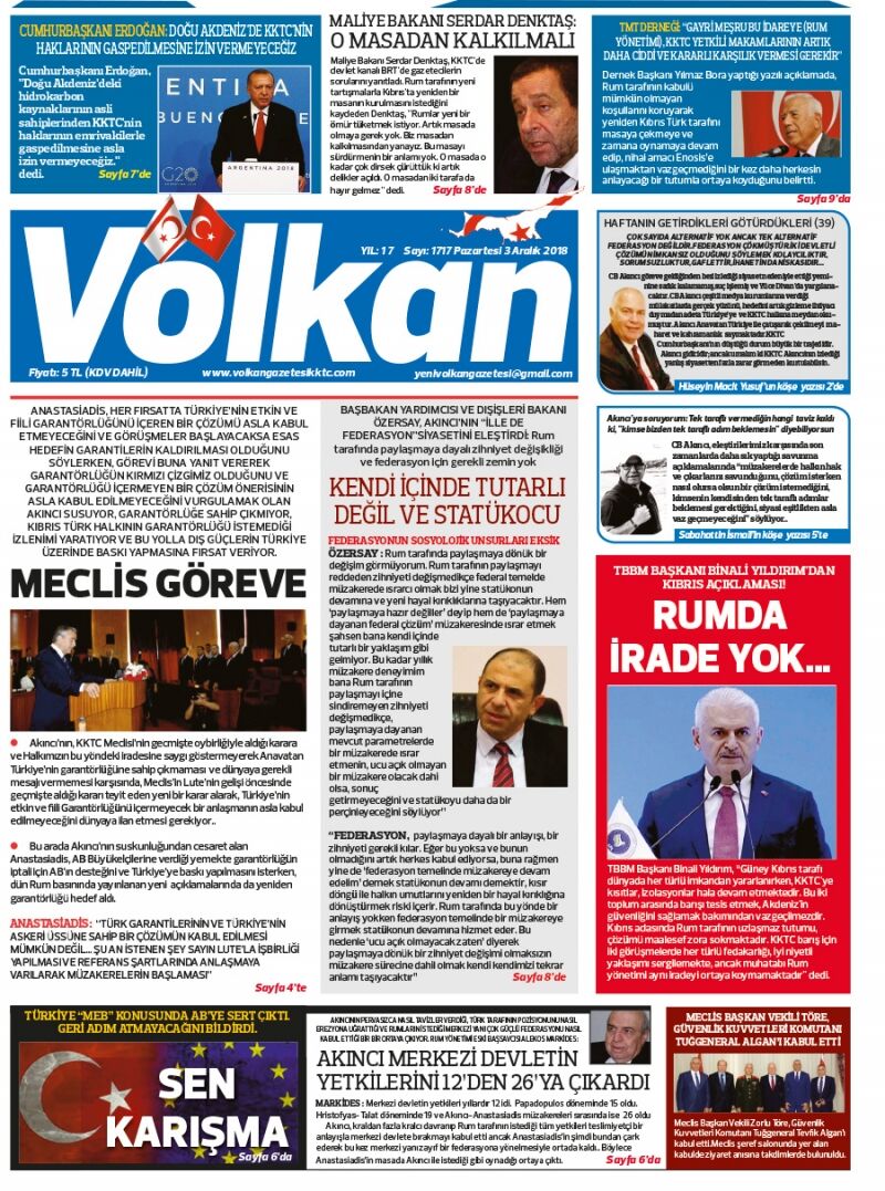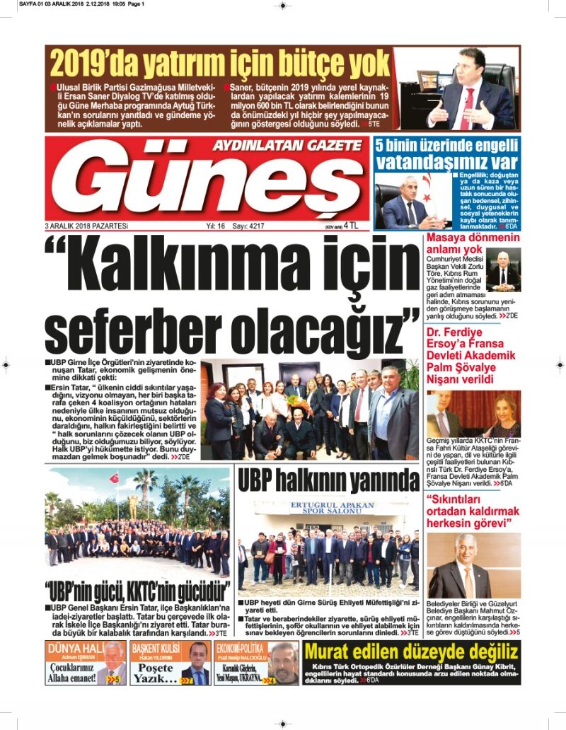 3 Aralık 2018 Pazartesi Gazete Manşetleri