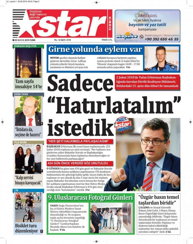 3 Mayıs 2019 Cuma Gazete Manşetleri