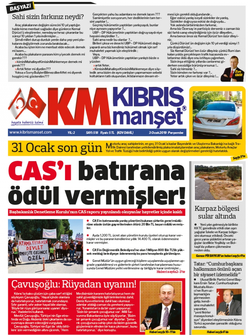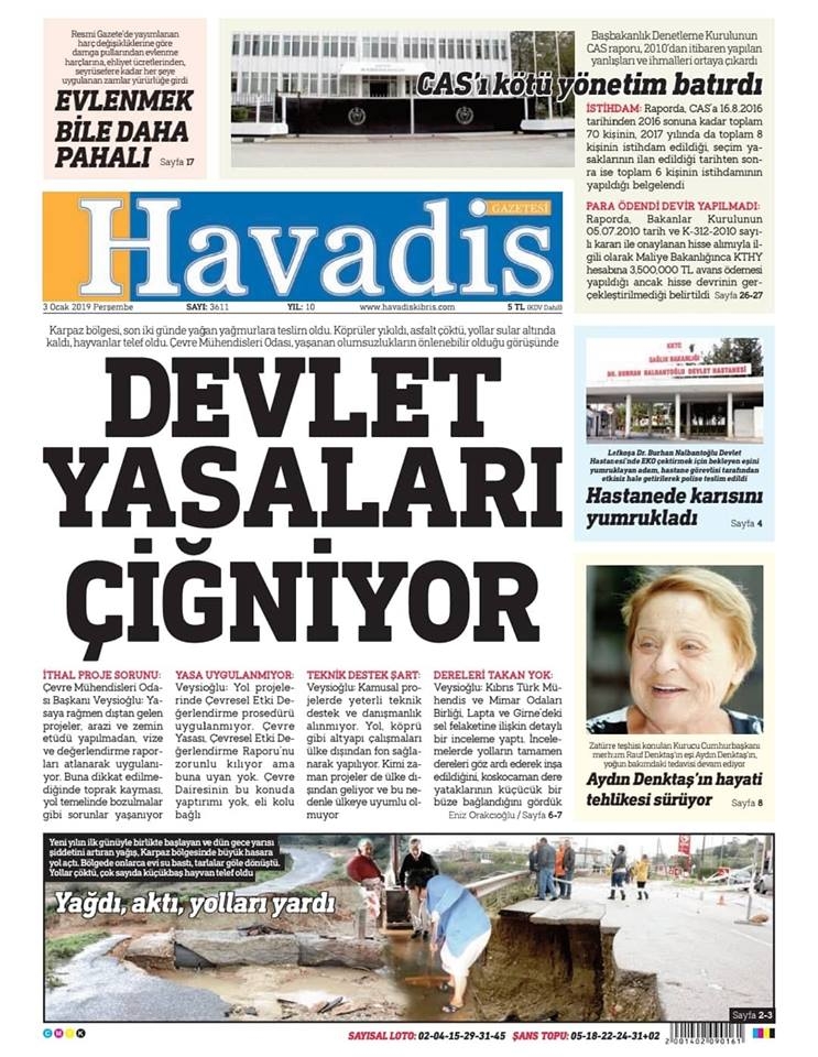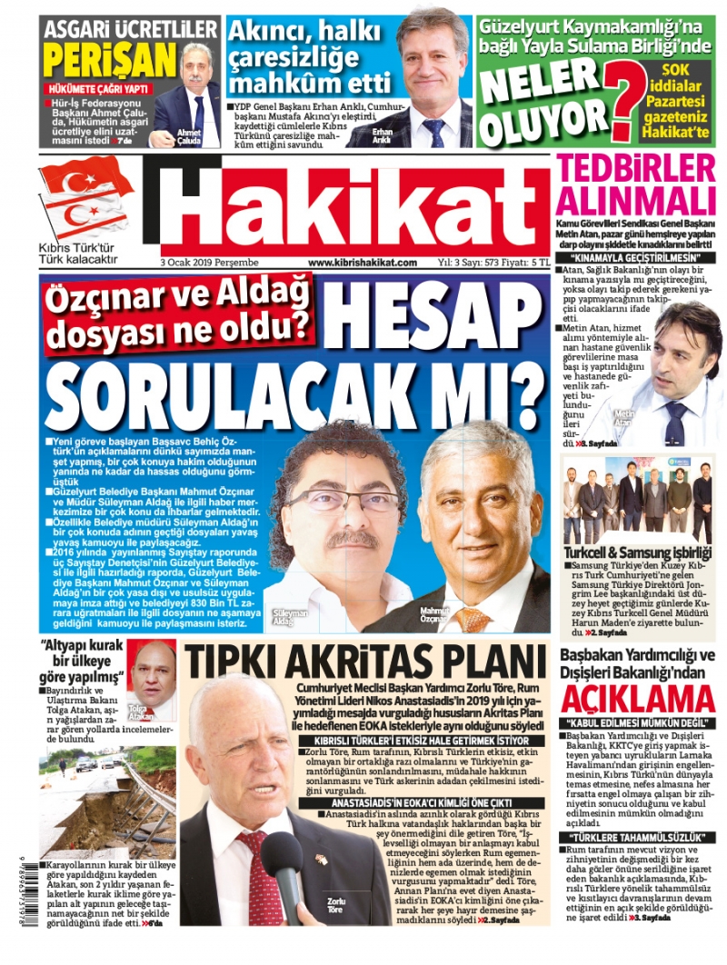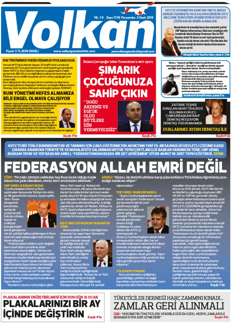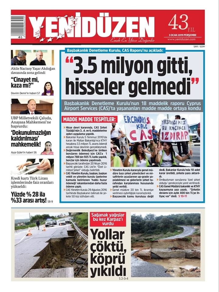 3 Ocak 2019 Perşembe Gazete Manşetleri