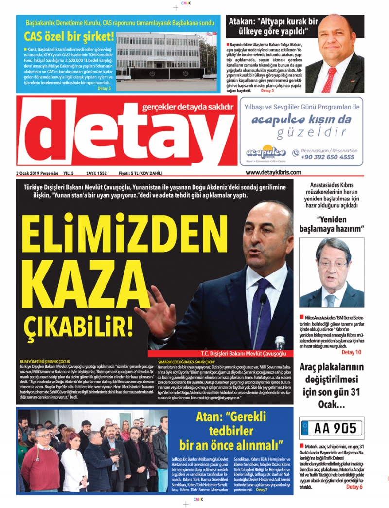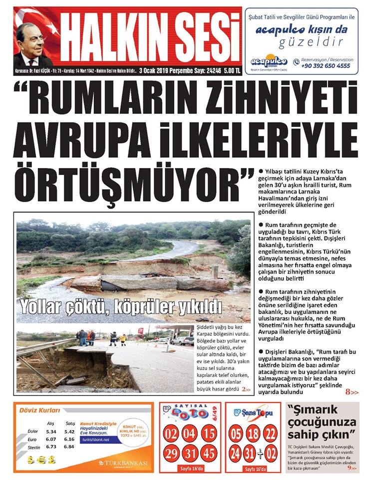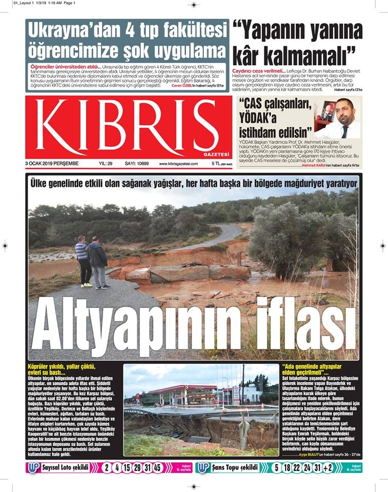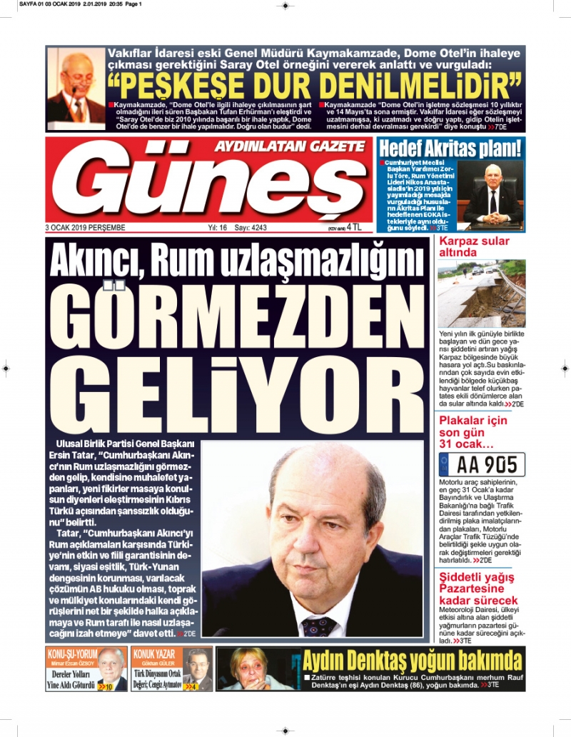 3 Ocak 2019 Perşembe Gazete Manşetleri