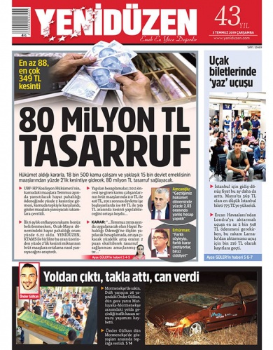 3 Temmuz 2019 Çarşamba Gazete Manşetleri
