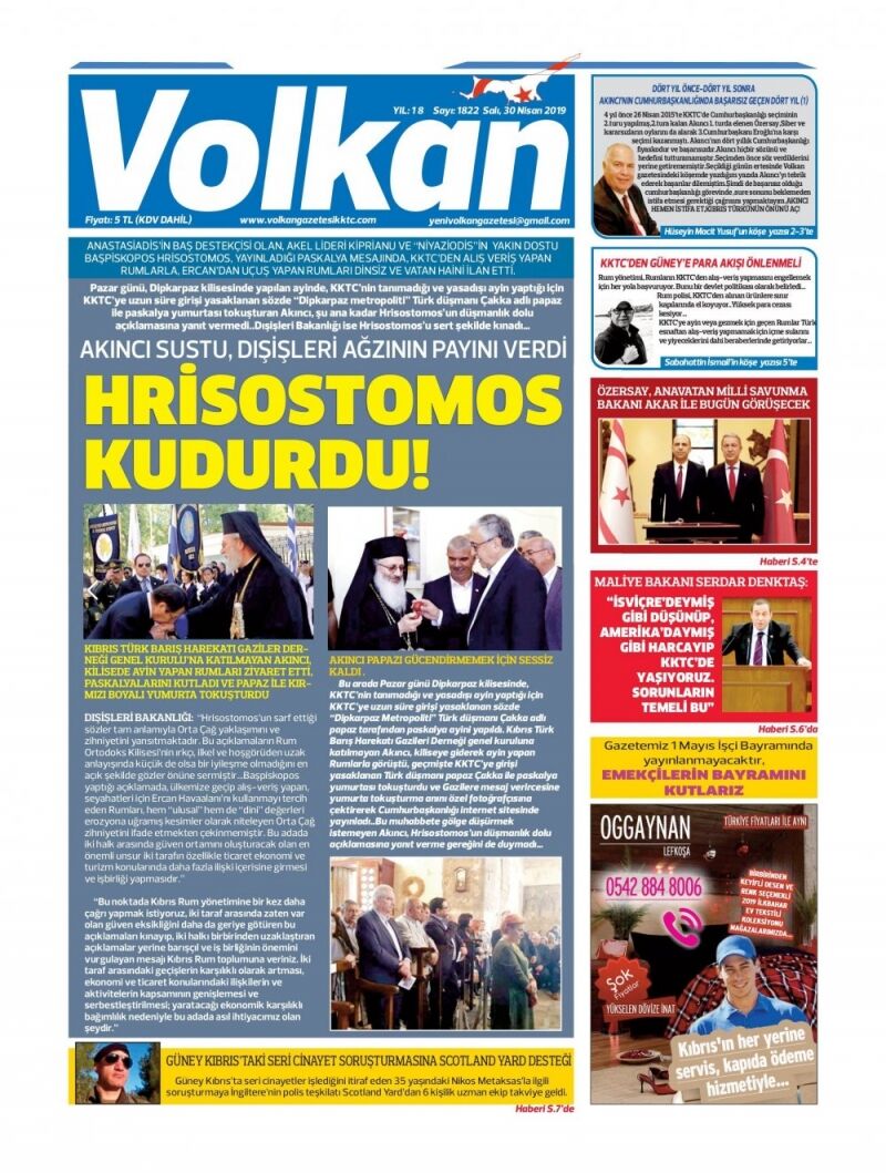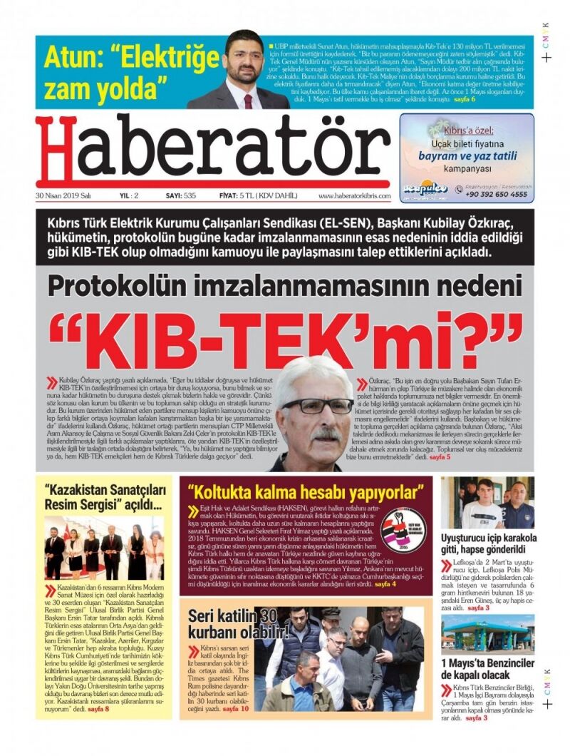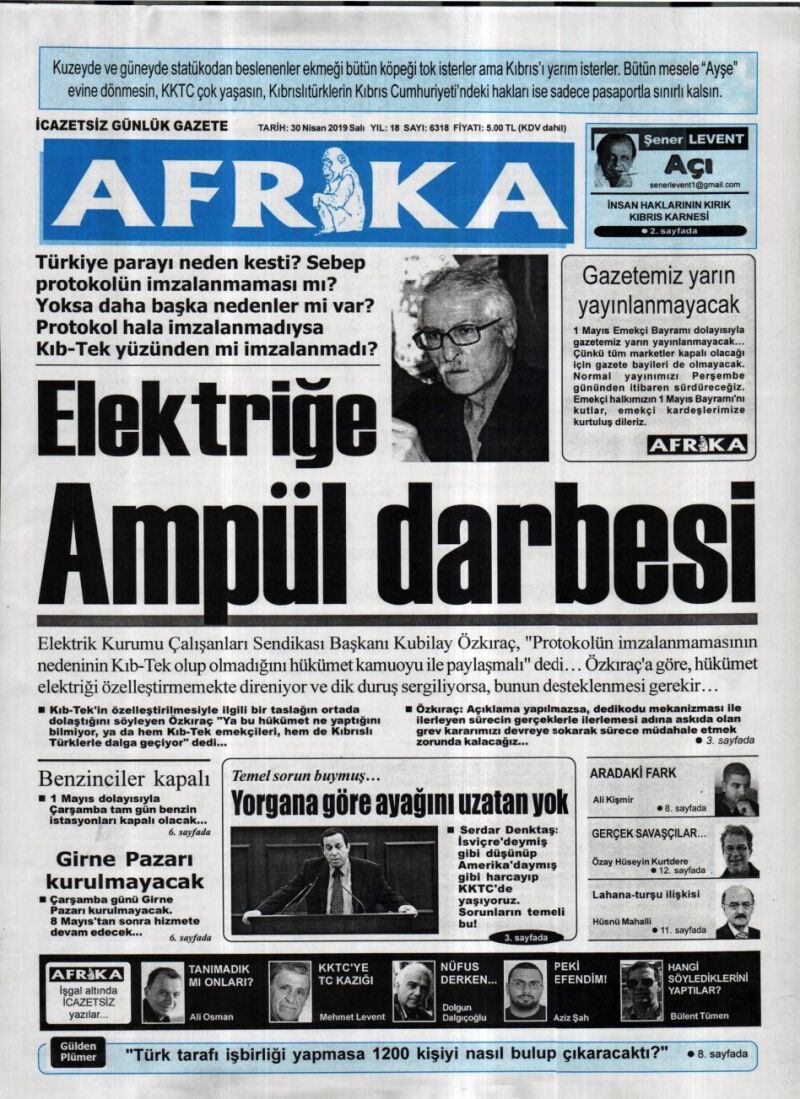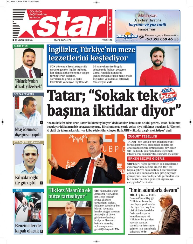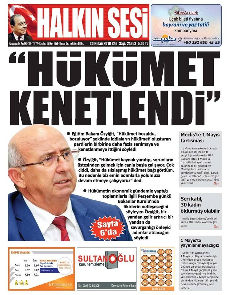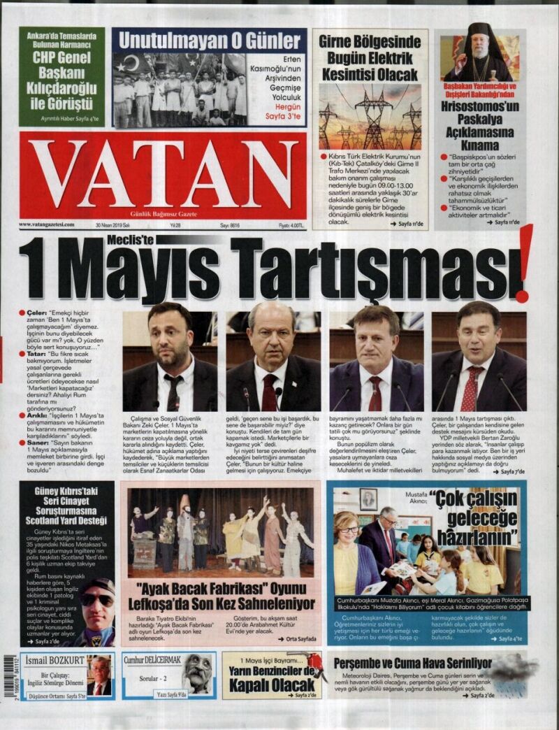 30 Nisan 2019 Salı Gazete Manşetleri