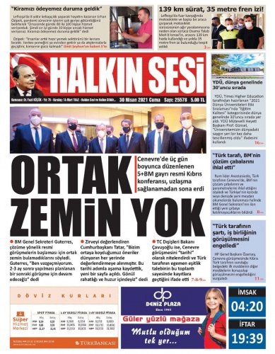 30 Nisan 2021 Cuma Gazete Manşetleri