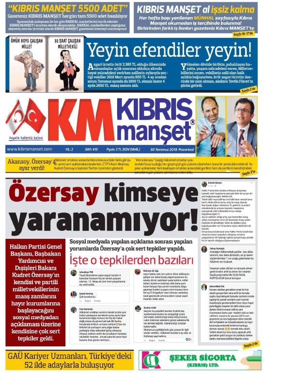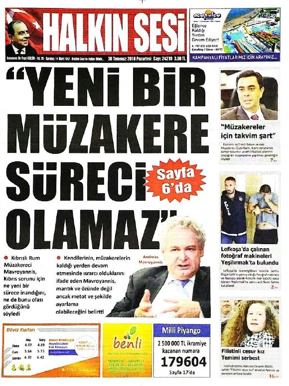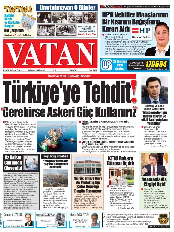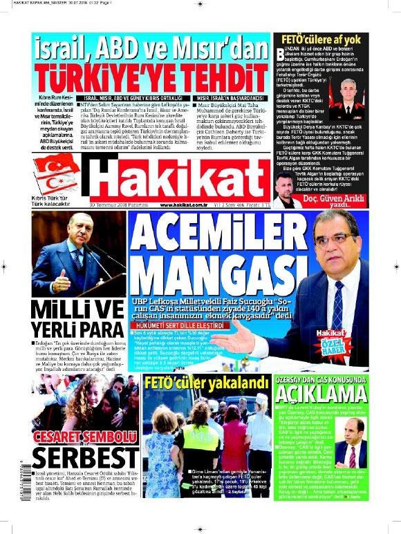30 Temmuz 2018 Pazartesi Gazete Manşetleri