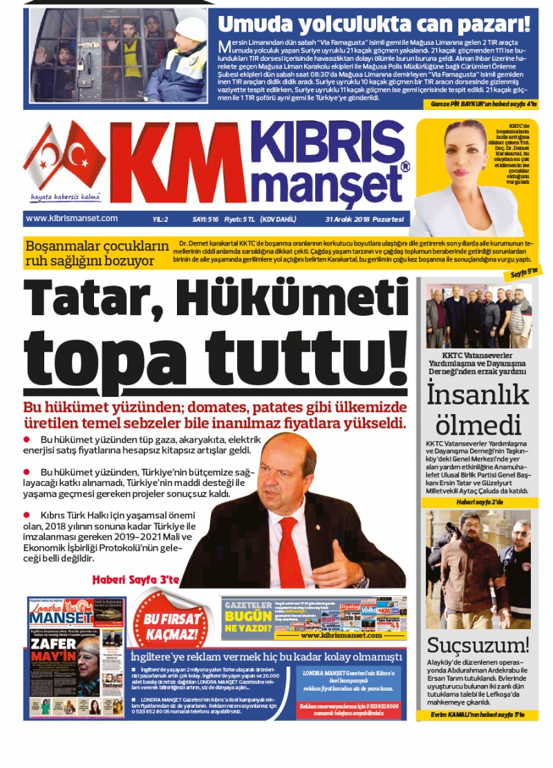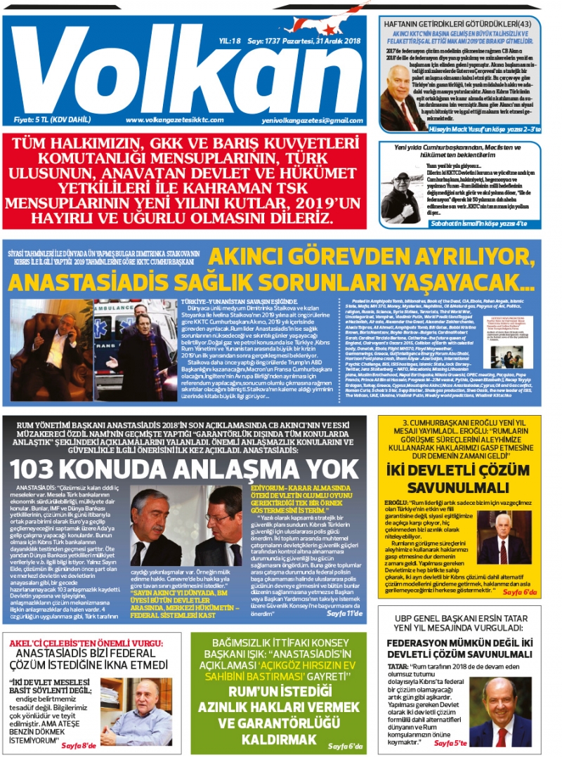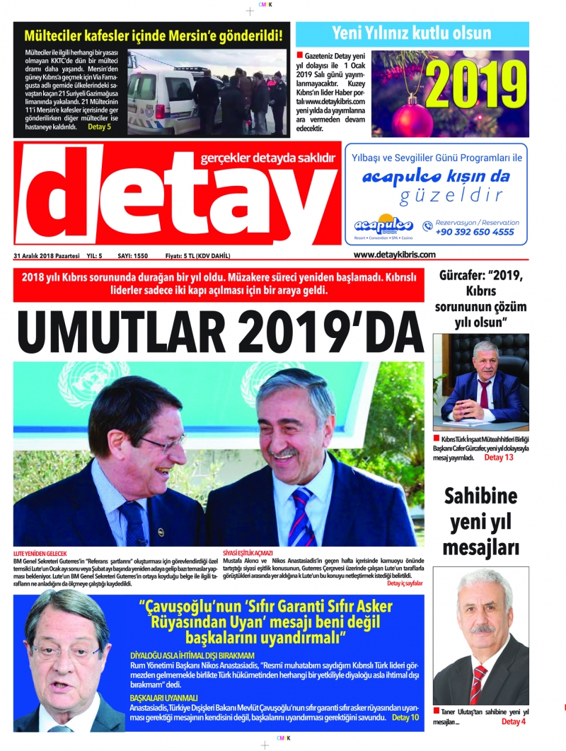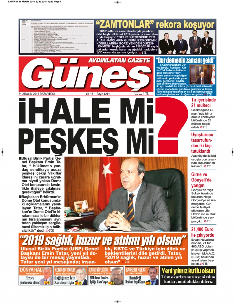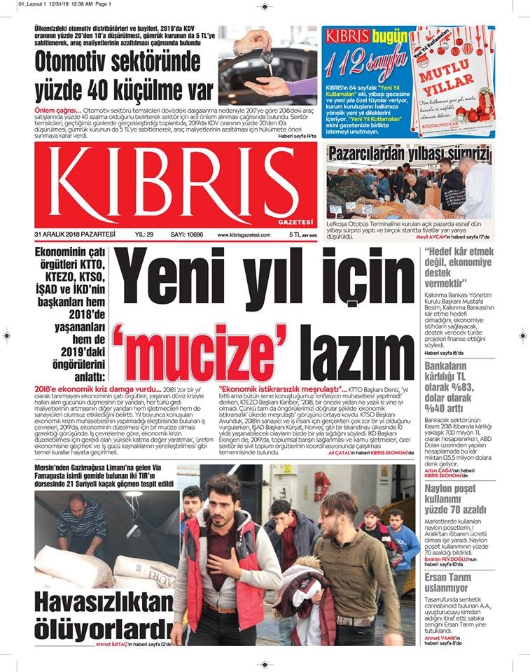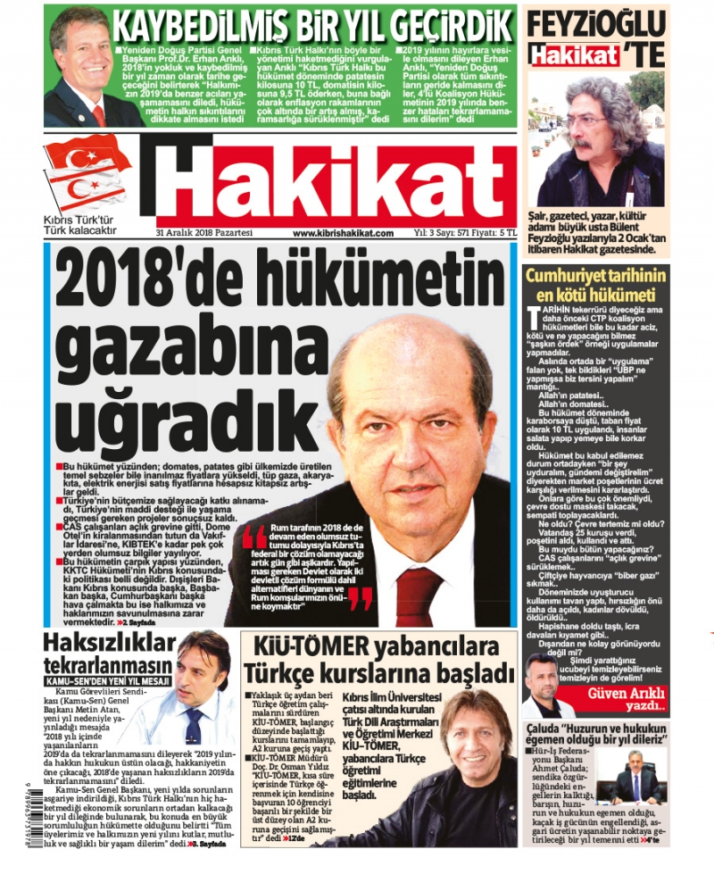 31 Aralık 2018 Pazartesi Gazete Manşetleri