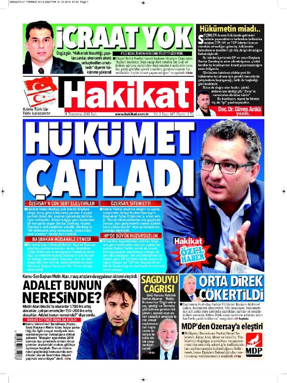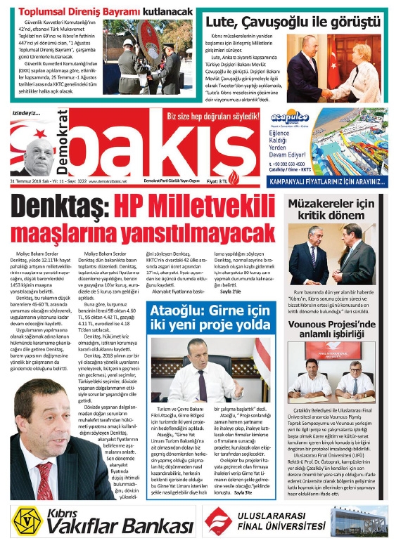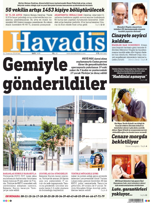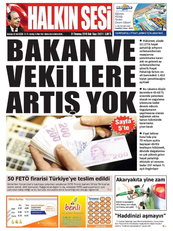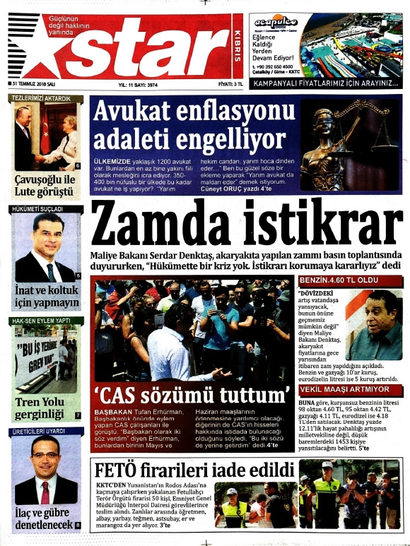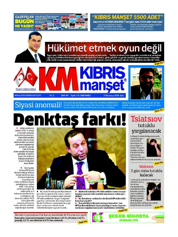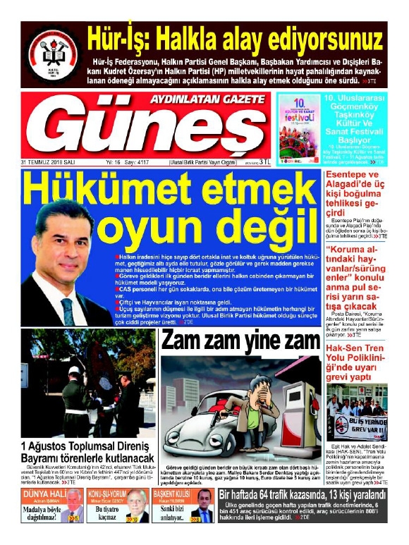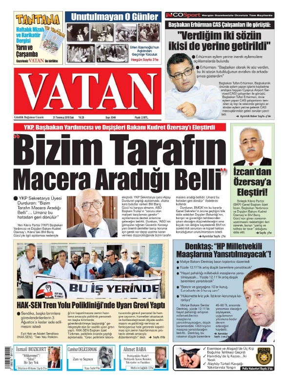 31 Temmuz 2018 Salı Gazete Manşetleri