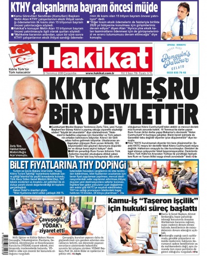 31 Temmuz 2019 Çarşamba Gazete Manşetleri