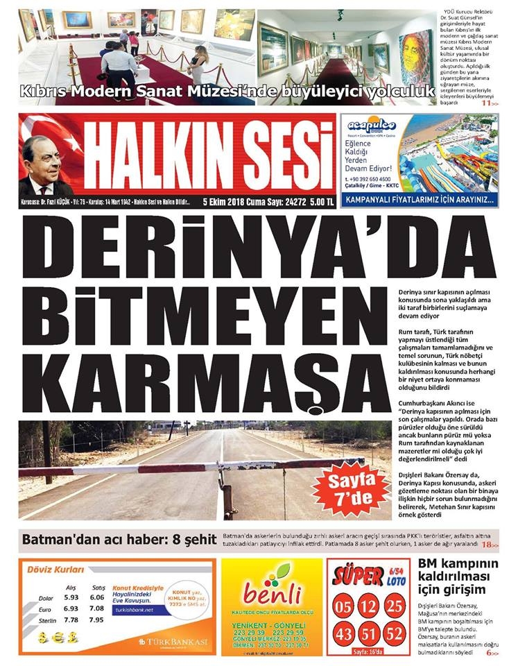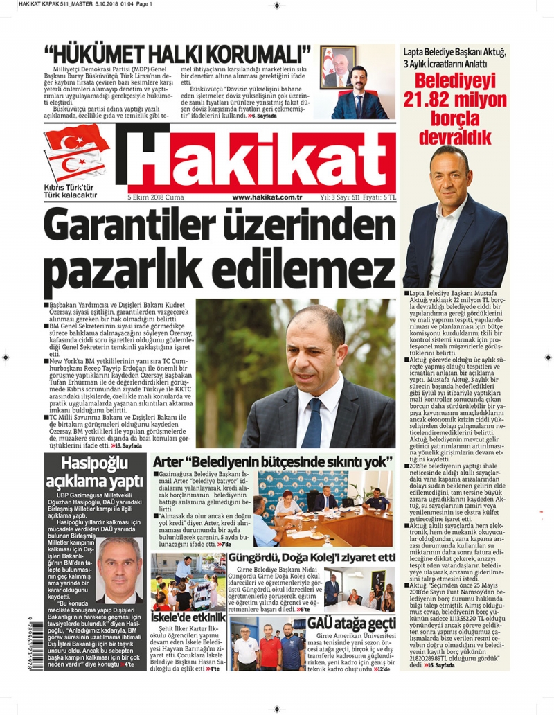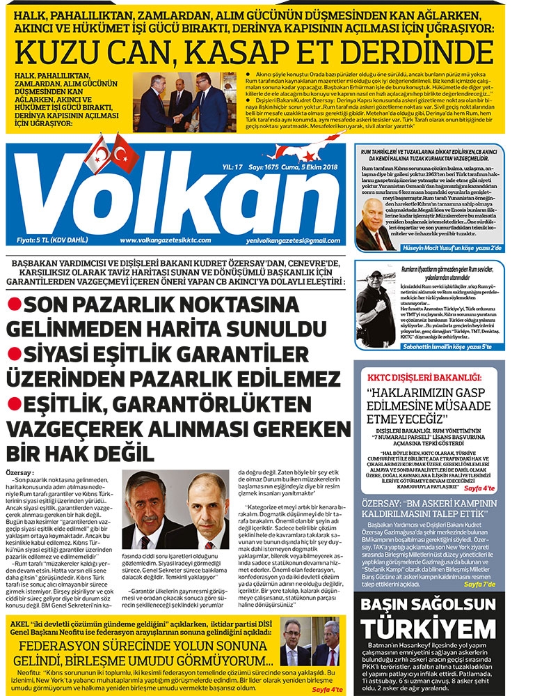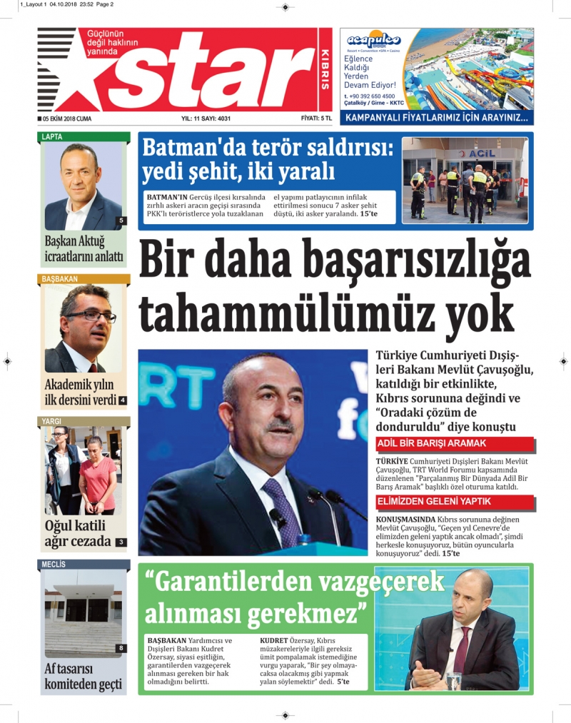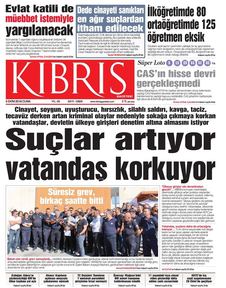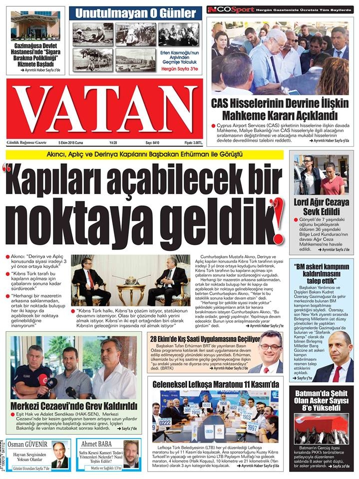 5 Ekim 2018 Cuma Gazete Manşetleri