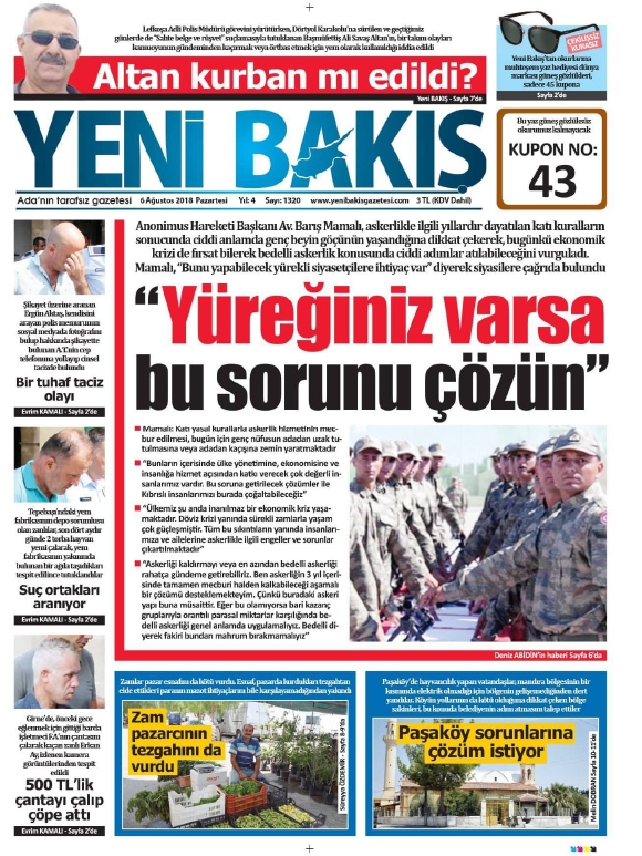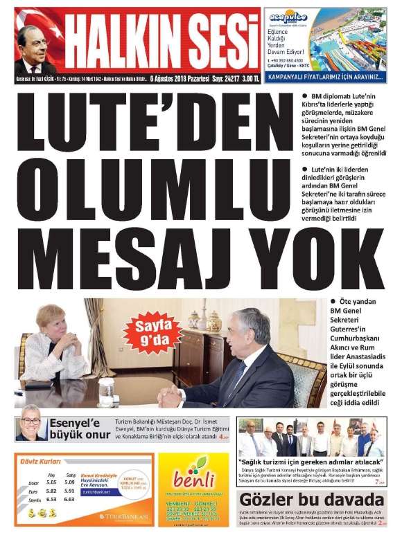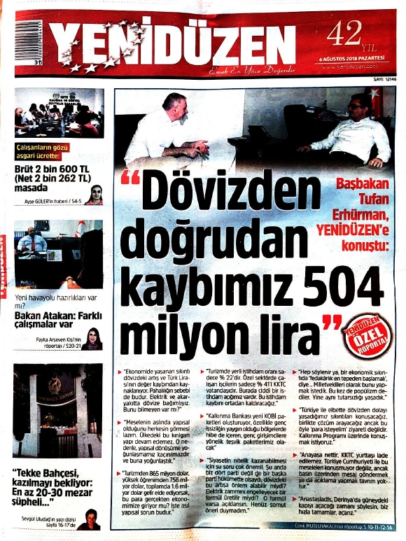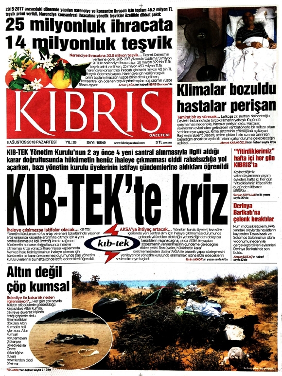 6 Ağustos 2018 Pazartesi Gazete Manşetleri