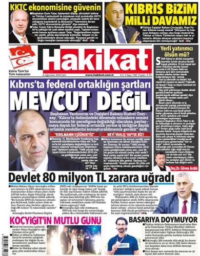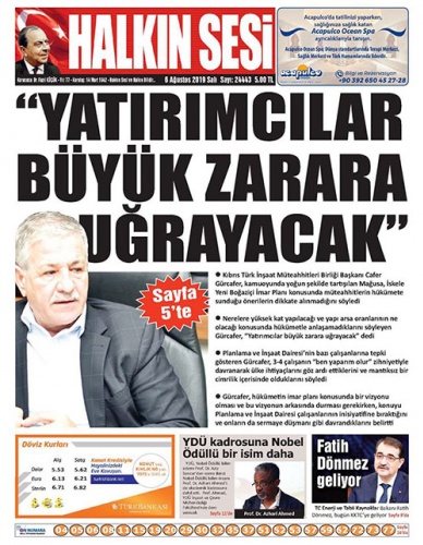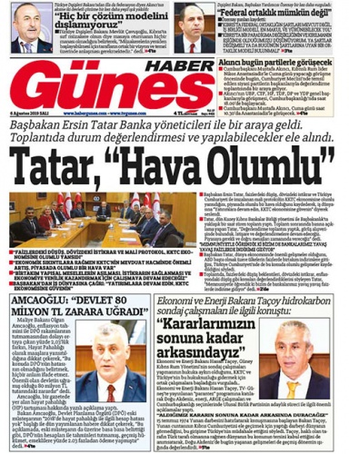 6 Ağustos 2019 Salı Gazete Manşetleri