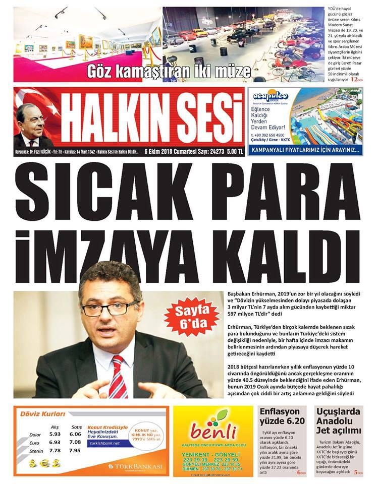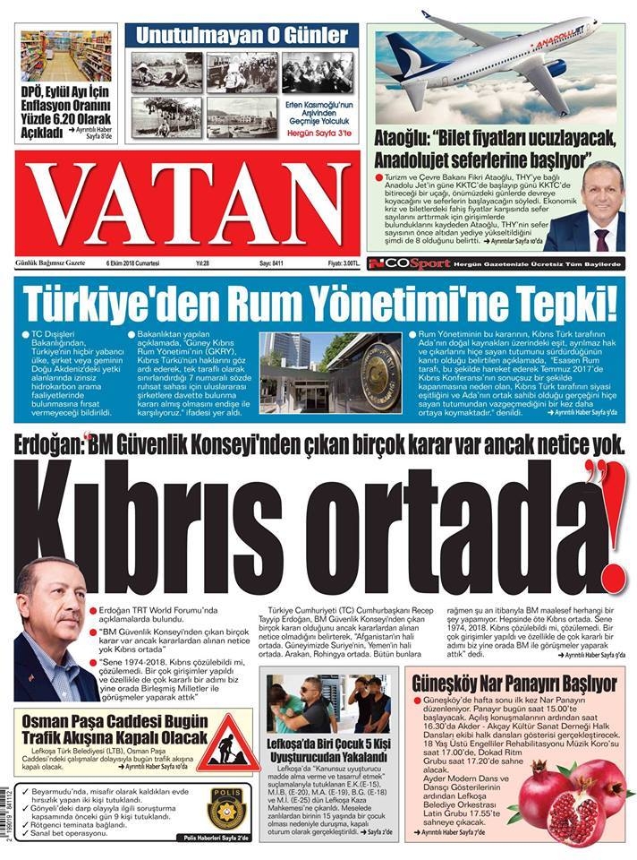 6 Ekim 2018 Cumartesi Gazete Manşetleri