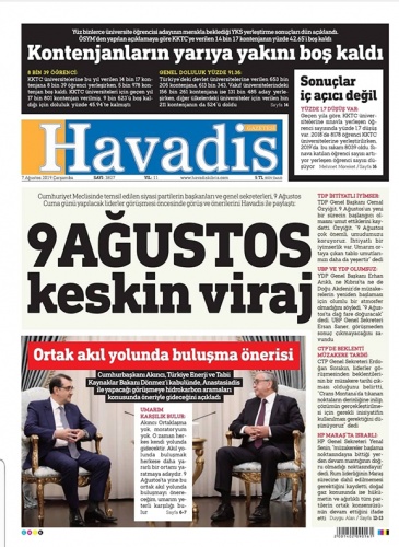 7 Ağustos 2019 Çarşamba Gazete Manşetleri