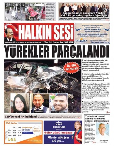 7 Ekim 2019 Pazartesi Gazete Manşetleri