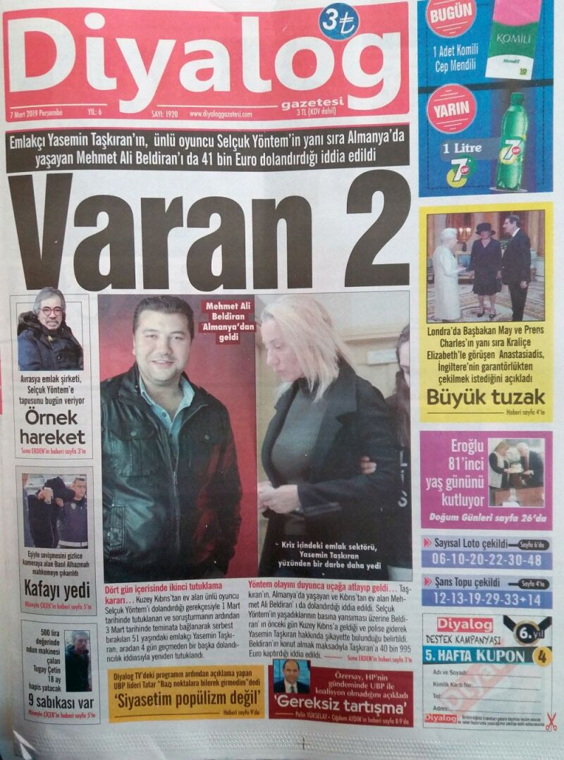 7 Mart 2019 Perşembe Gazete Manşetleri