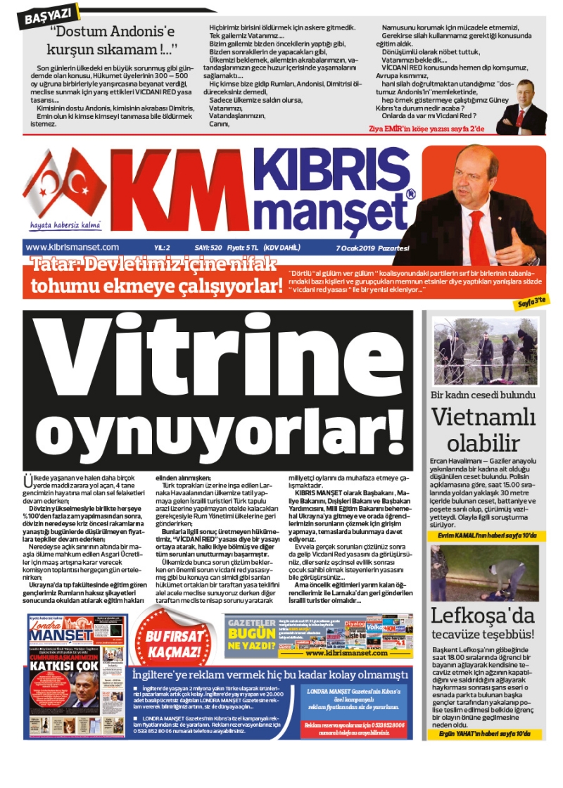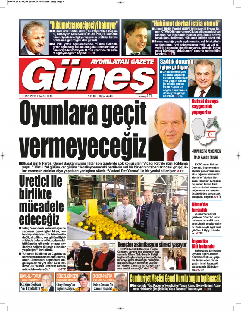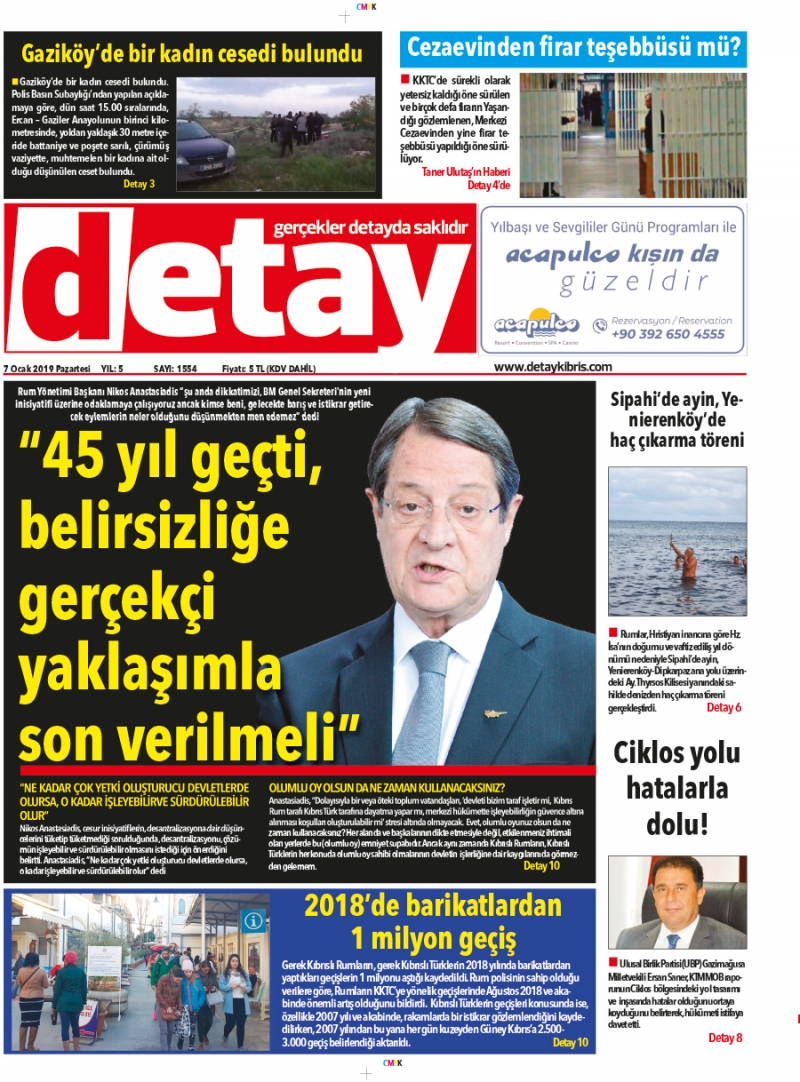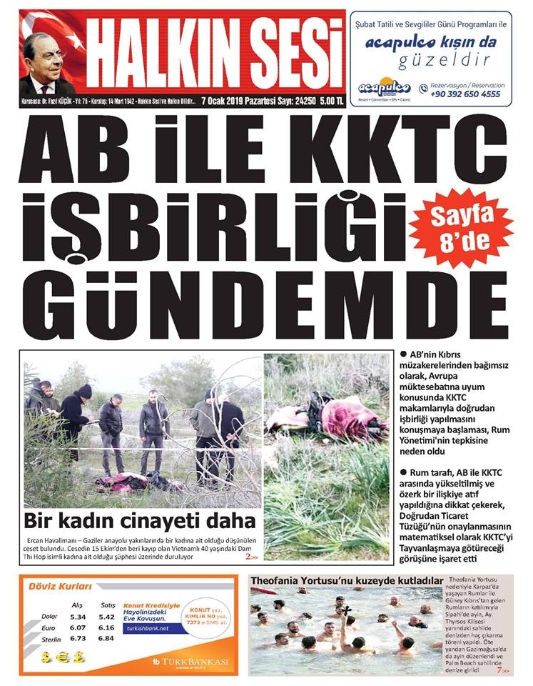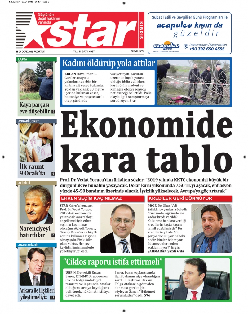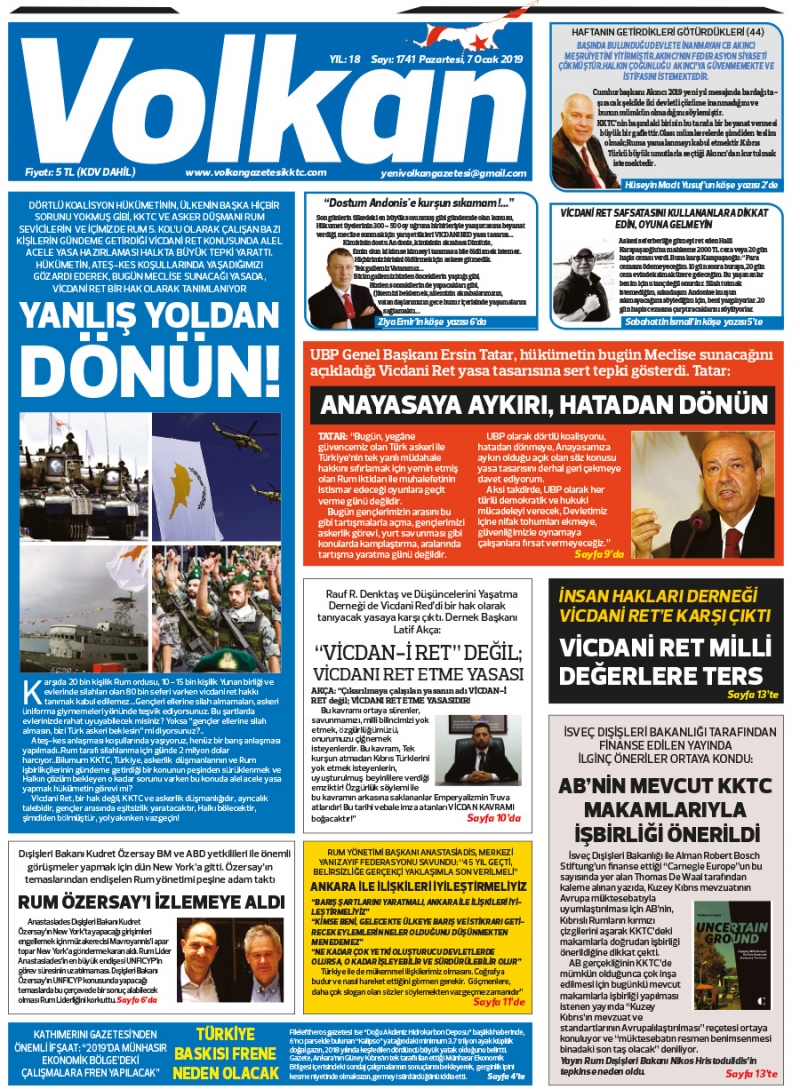 7 Ocak 2019 Pazartesi Gazete Manşetleri