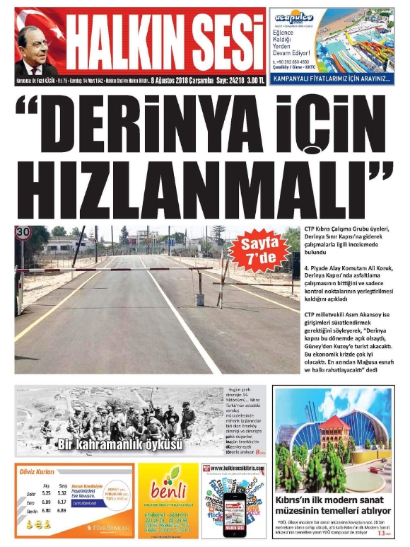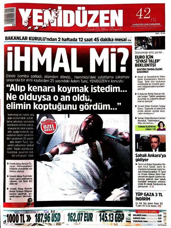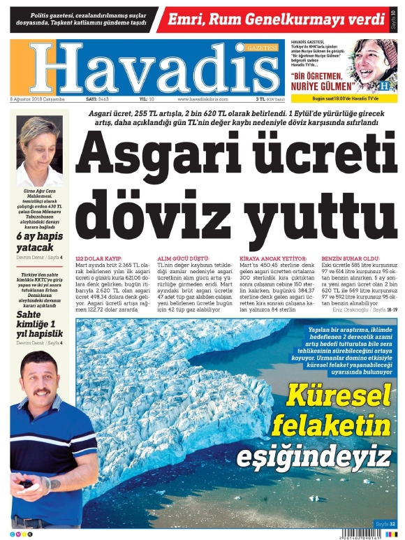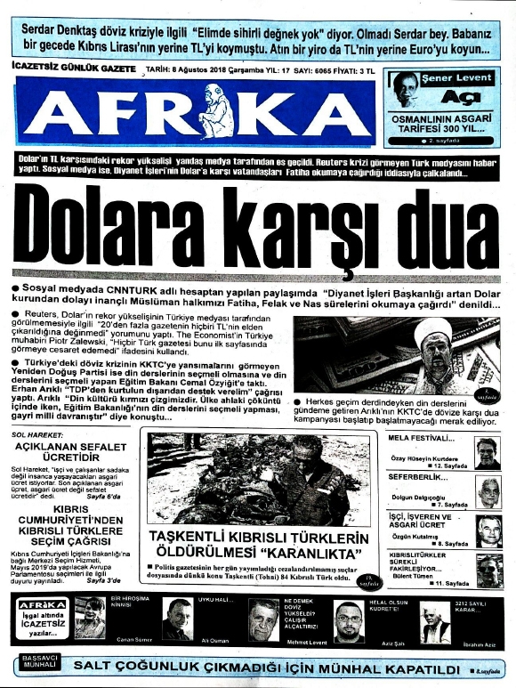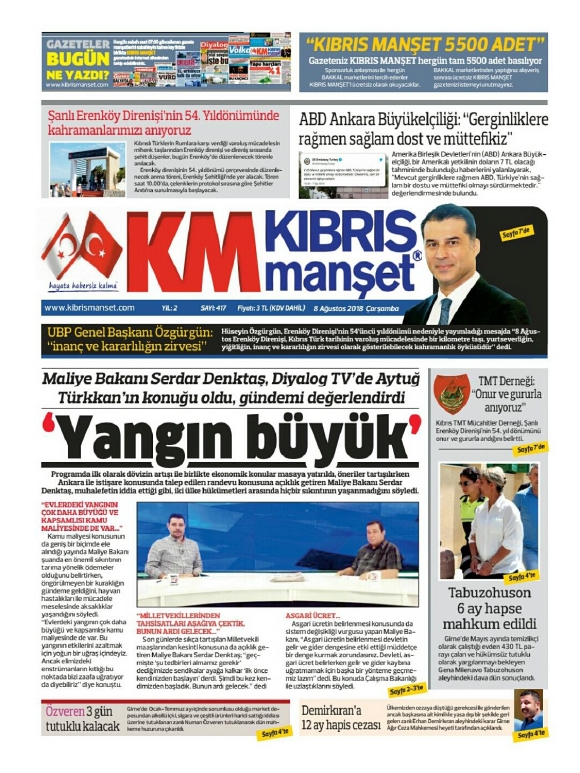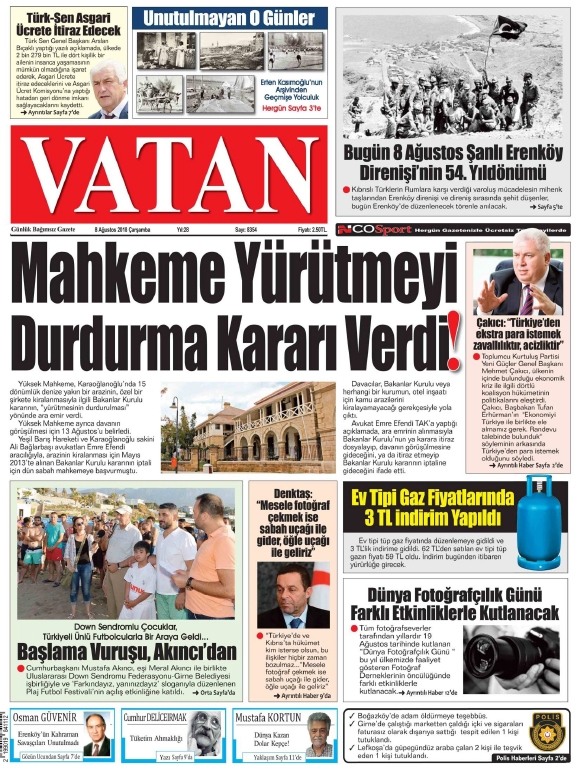 8 Ağustos 2018 Çarşamba Gazete Manşetleri8