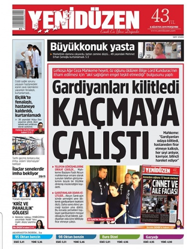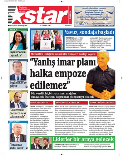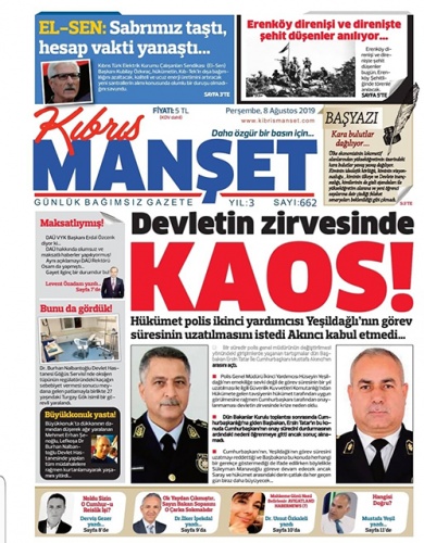 8 Ağustos 2019 Perşembe Gazete Manşetleri