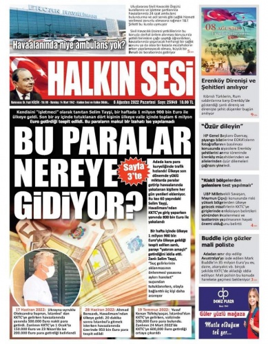 8 Ağustos 2022 Pazartesi Gazete Manşetleri